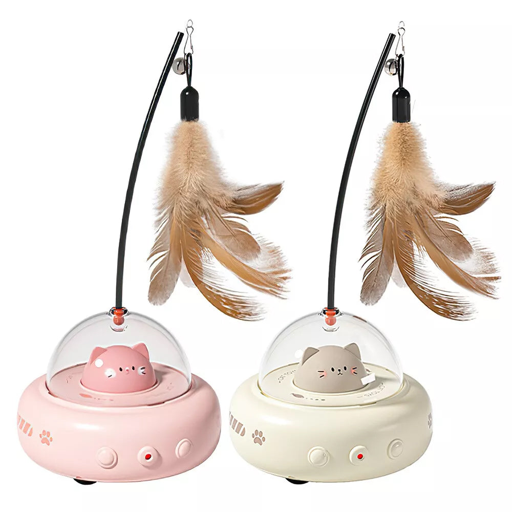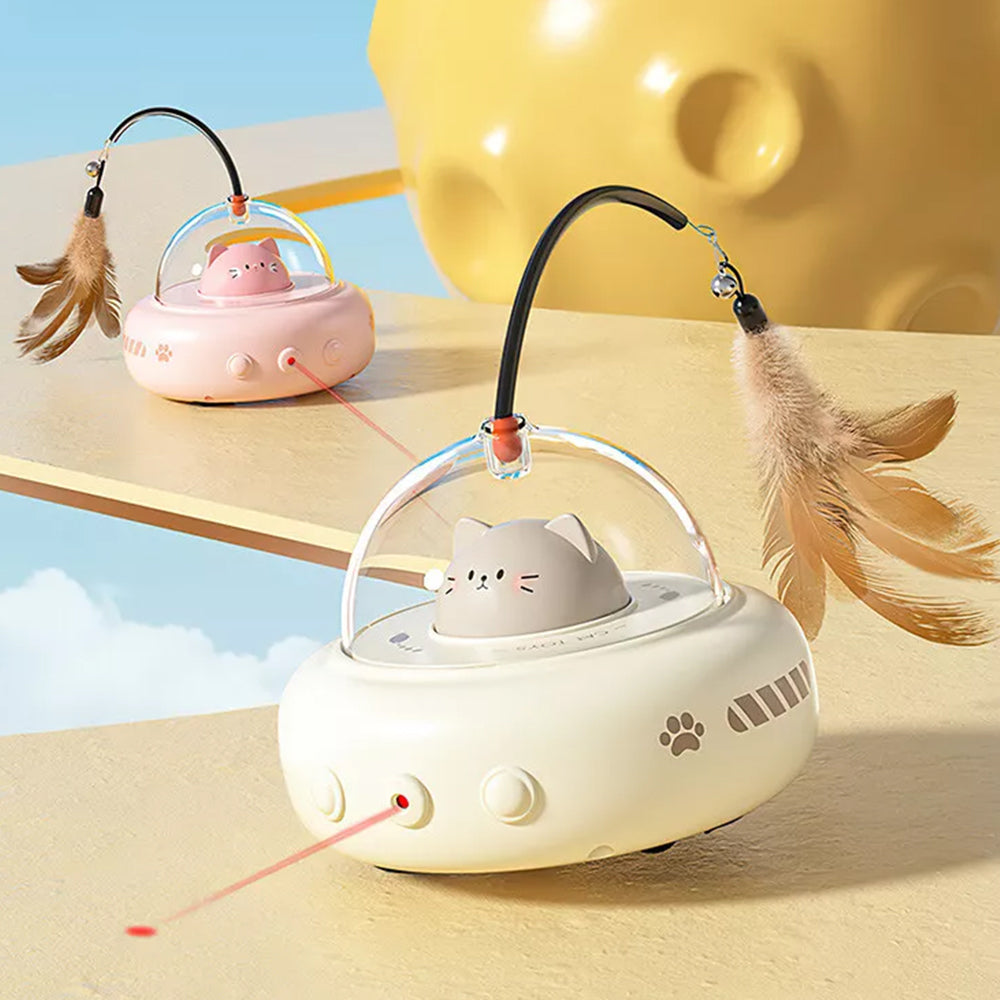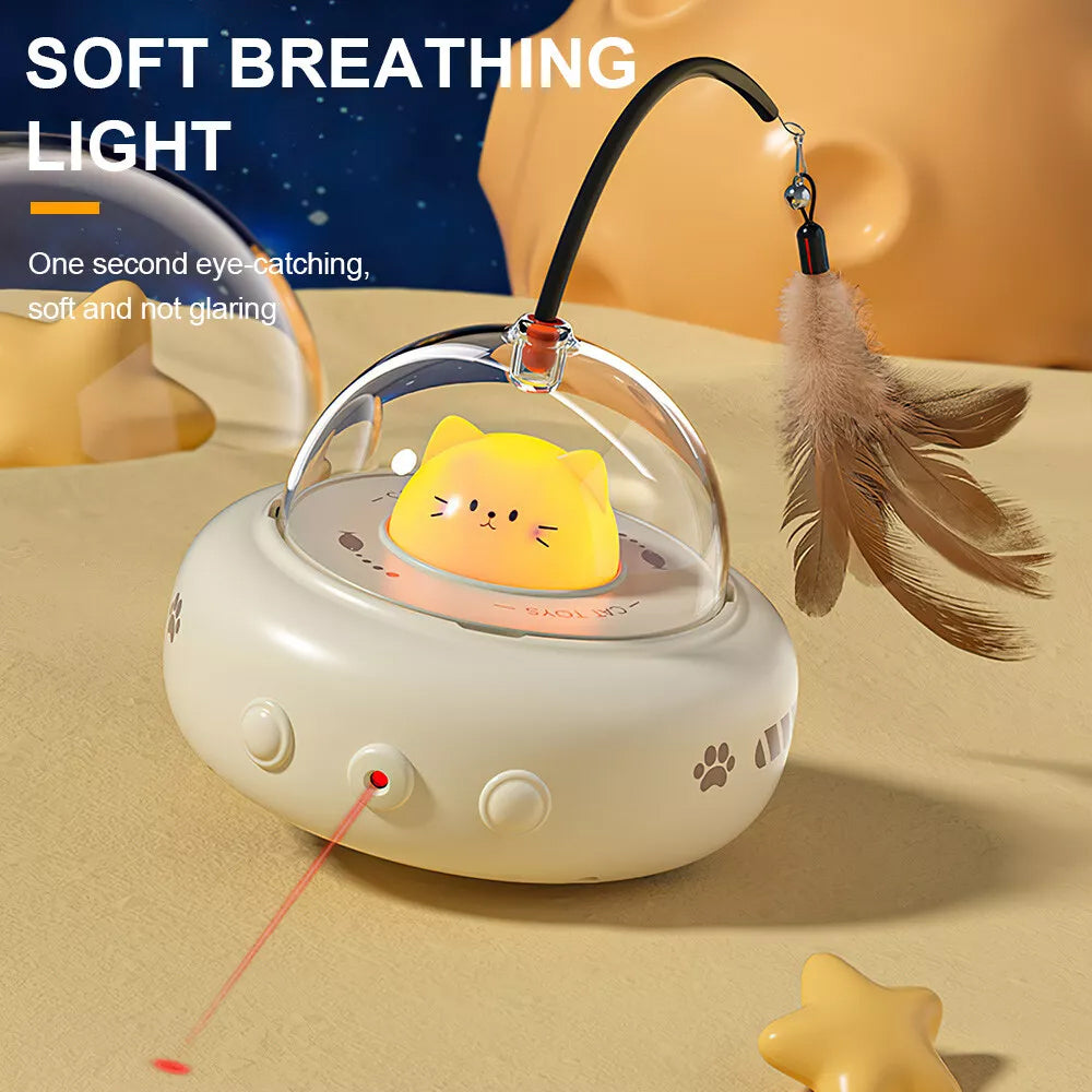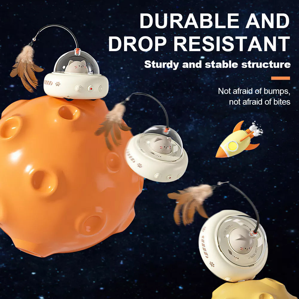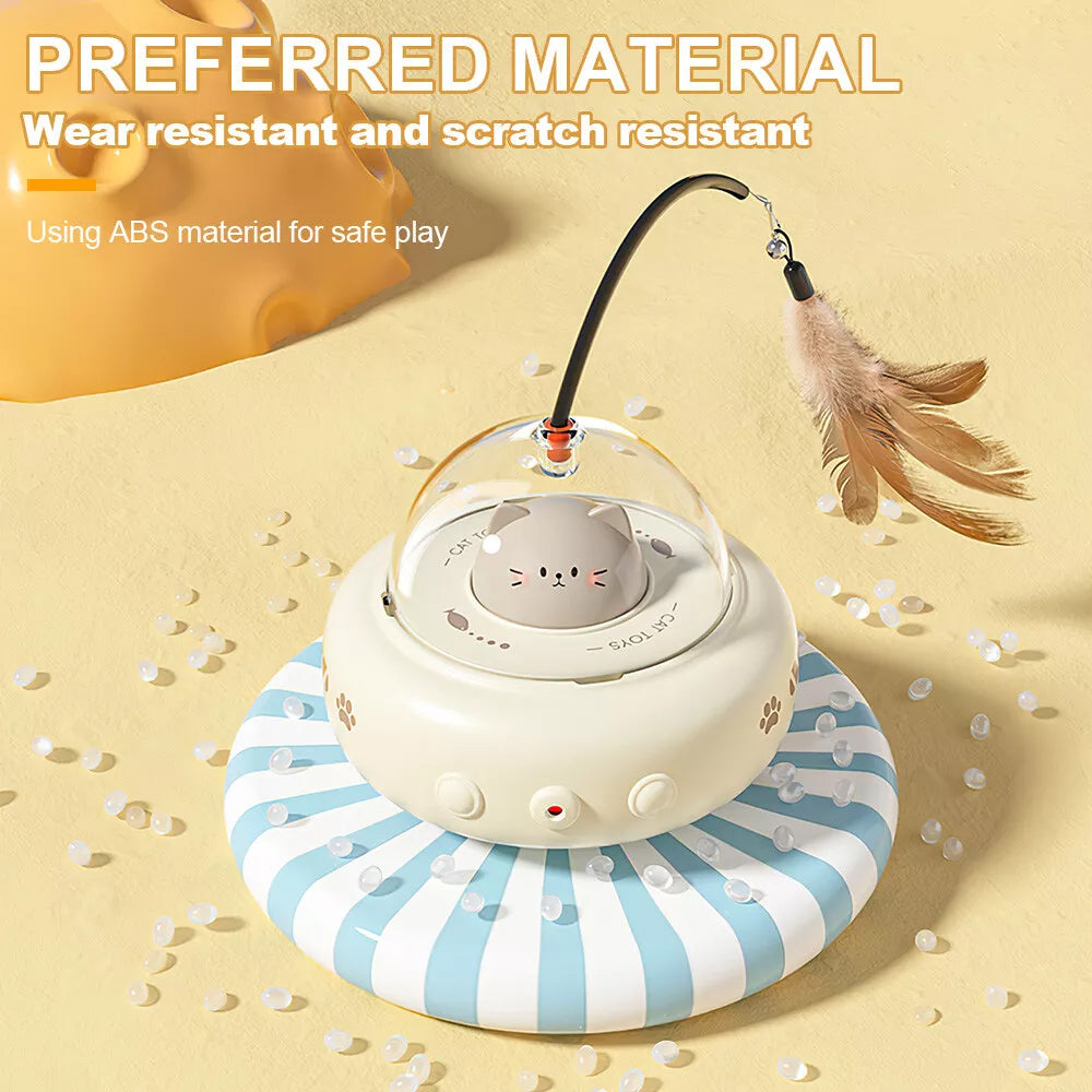3. Novelty and Exciting: With a beautiful shape and 360-degree red light beam, our electric interactive cat toy provides a novel and exciting play experience for felines. Soft and cozy feathers are also randomly placed to add to the fun
