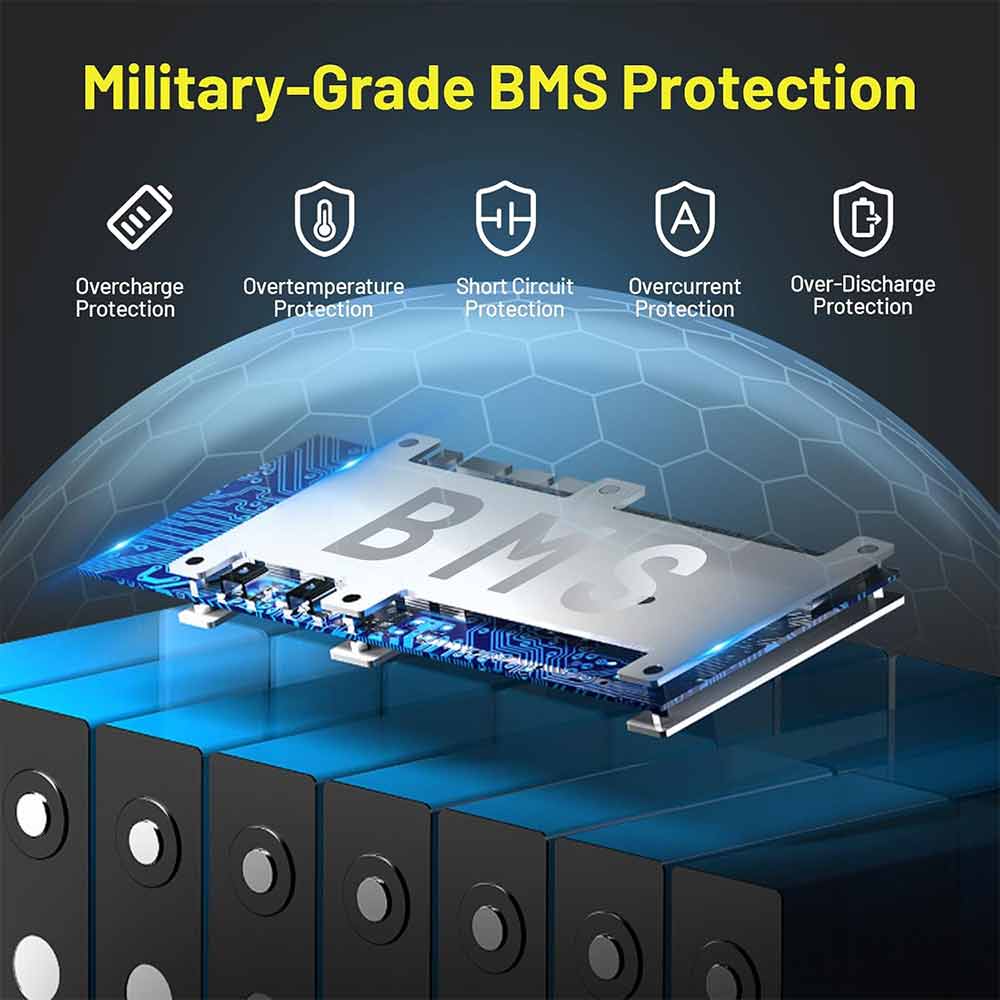 Built-in Smart BMS: The integrated Battery Management System (BMS) provides comprehensive protection against overcharge, over-discharge, over-current, and short circuits, ensuring operational safety and extending the battery's lifespan.