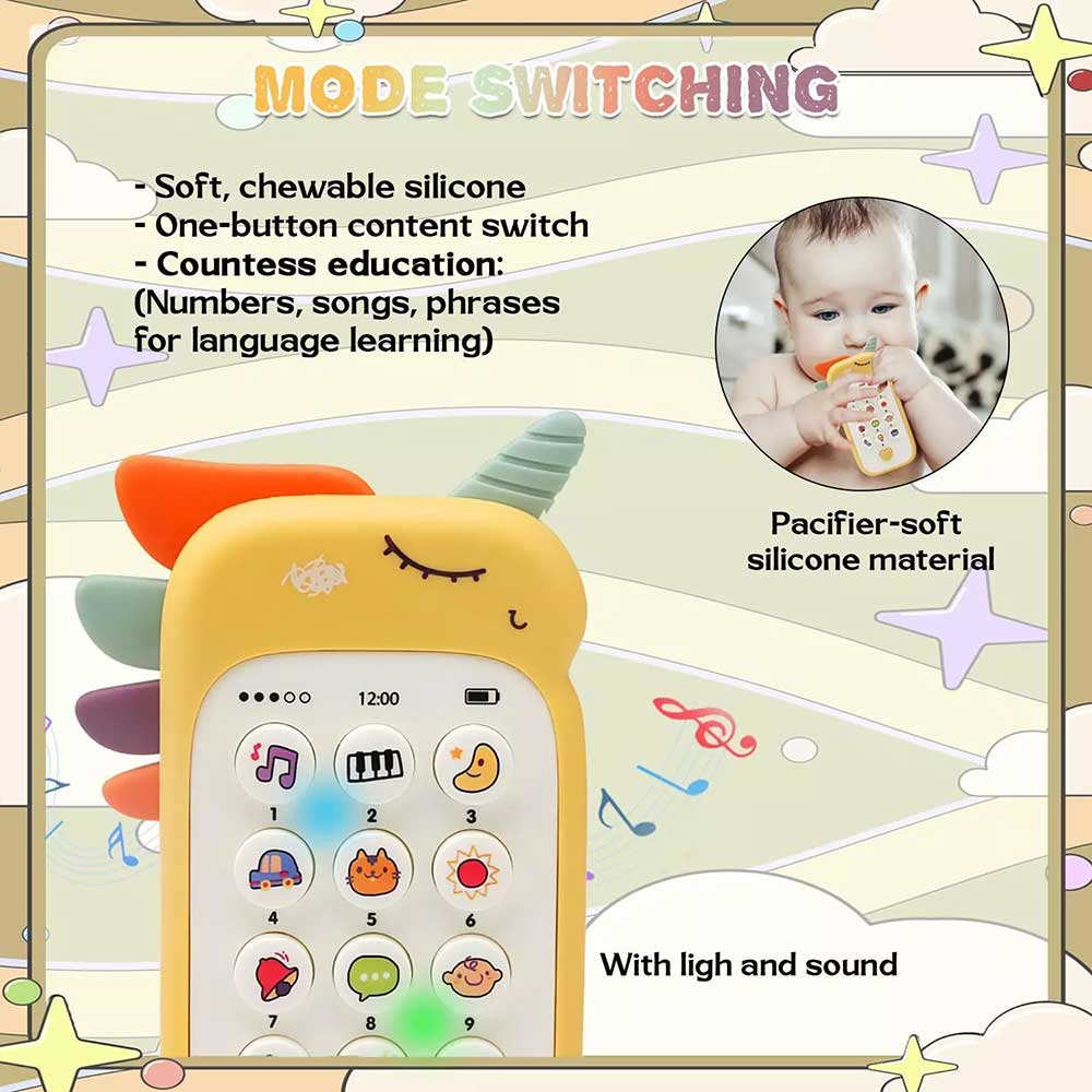 Safe and Soft Design: Made with chewable silicone parts that are gentle on your baby’s gums, this phone is perfect for teething babies. The pacifier-soft silicone design ensures safety and comfort during exploration.