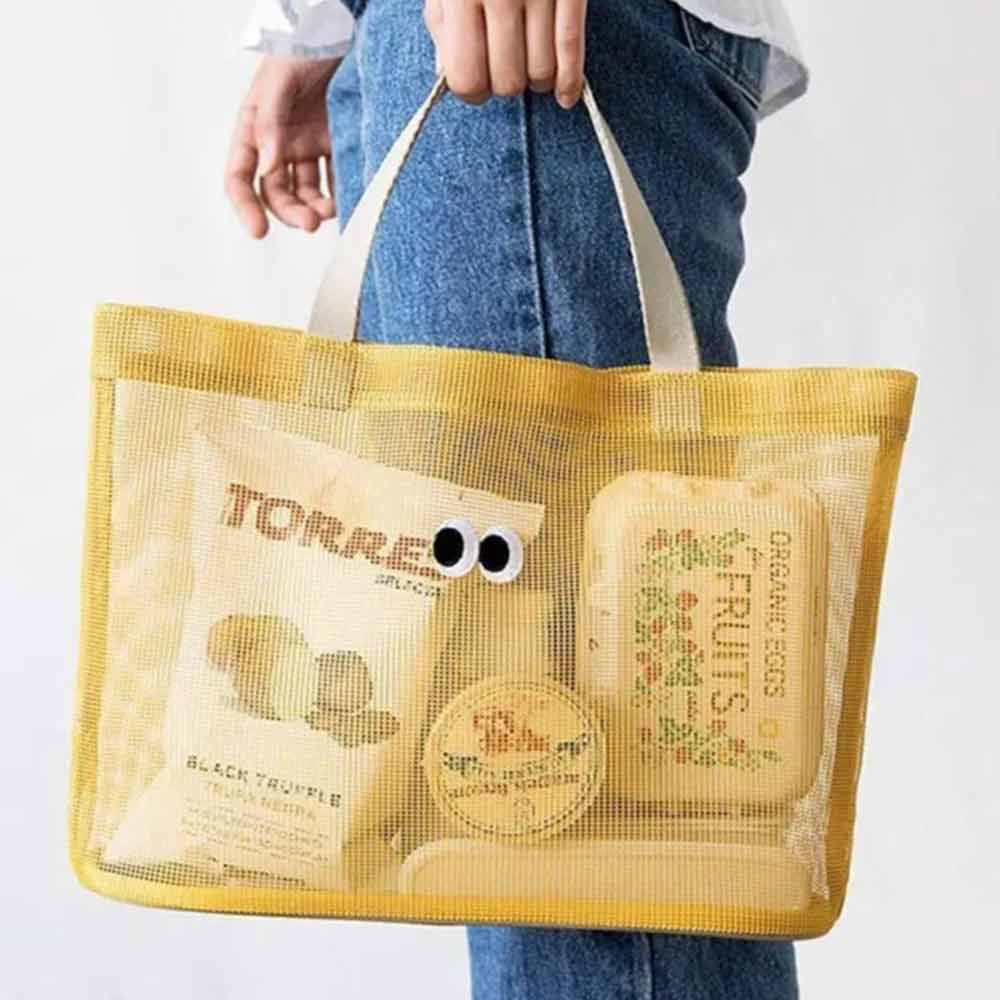 Beach Storage Bag Mesh Handbag Large Capacity Shopping Shoulder Storage Swim