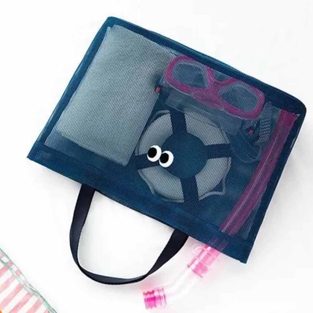 Mesh beach bag is big enough to carry 4-6 beach towels, water bottles, toys, sunblock, shoes, sunglasses and all you needs.