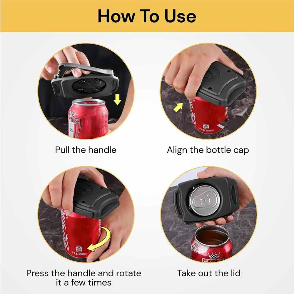 - Easy To Use: Just tap the can opener and turn it clockwise 2-3 times. After hearing the leak of the can turn it counterclockwise 2-3 times to easily open the can, and finally push in the lid and slowly shake the open can opener, which is also very suitable for those who just want to drink beer or various beverages.