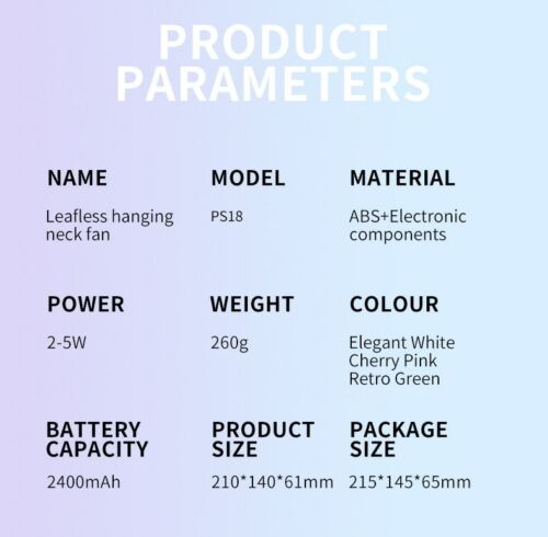 1.Hand free personal fan : free your hands anywhere; Fashion style makes you look so cool. Hanging around your neck, suitable for traveling in hot weather, saved you from the embarrassment of dripping with a sudden sweat in public on numerous occasions.