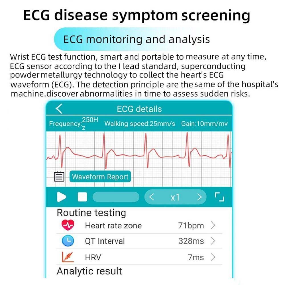Blood Glucose Sugar Smart Watch Body Temperature ECG HRV Monitor Waterproof