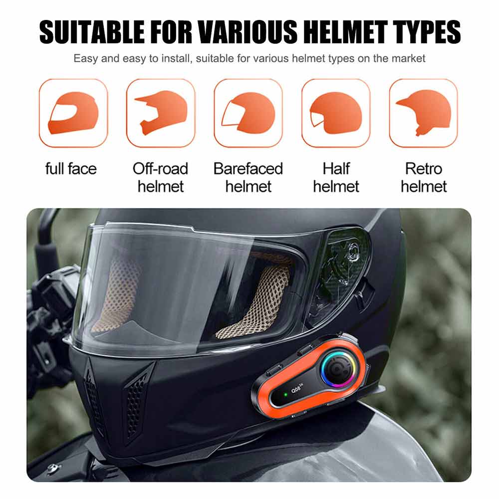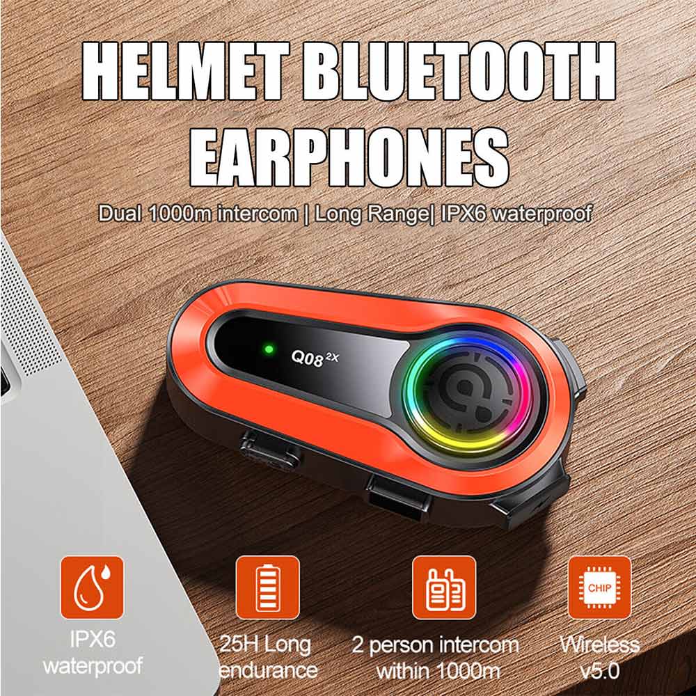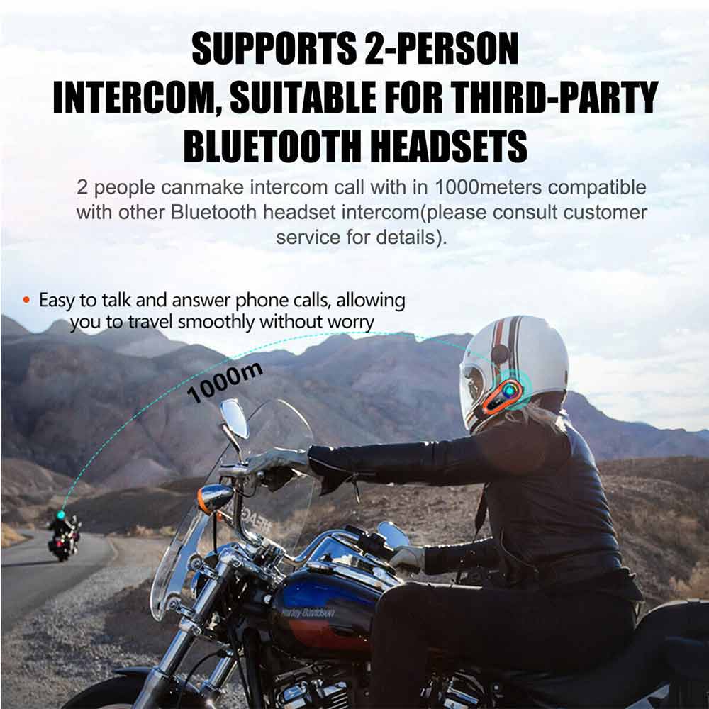 Bluetooth 5.0 1000M Motorcycle Helmet Intercom Headset Motorbike Interphone