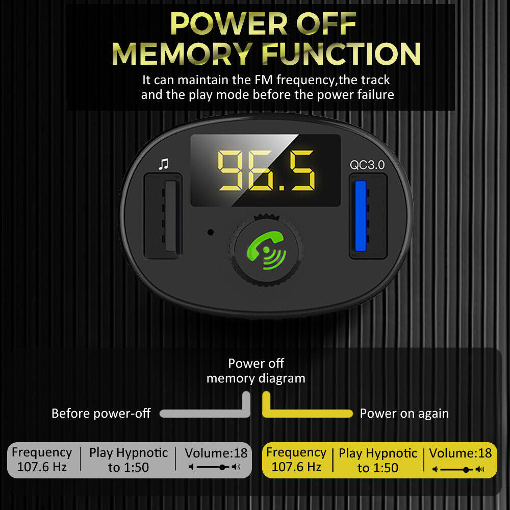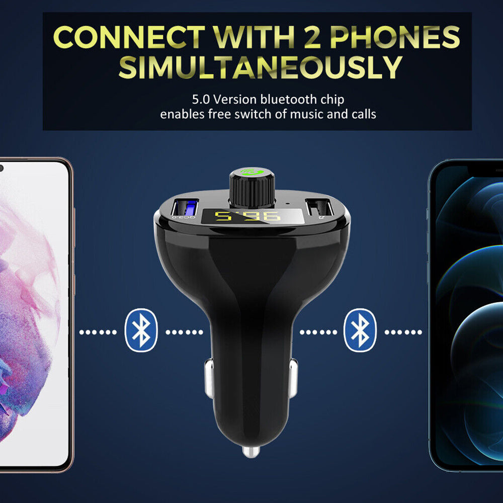 Bluetooth 5.0 Radio Car Kit Wireless FM Transmitter Dual USB Charger MP3 Player