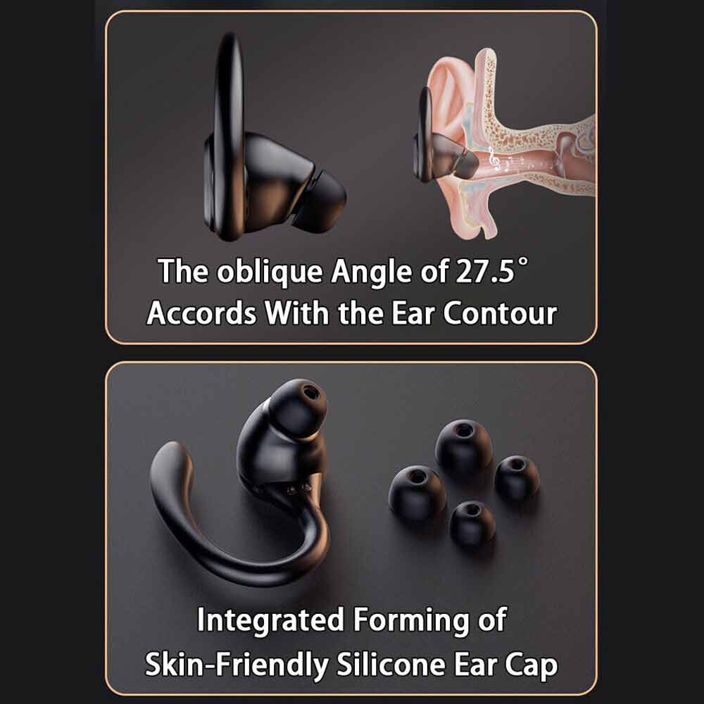 9.Ergonomic & Lightweight Earhooks: Super lightweight and ergonomic silicone earhooks ensure a secure, comfortable fit for any ear. Equipped with 3 pairs of ear caps, which can stay on your ears and get a suitable fitting.