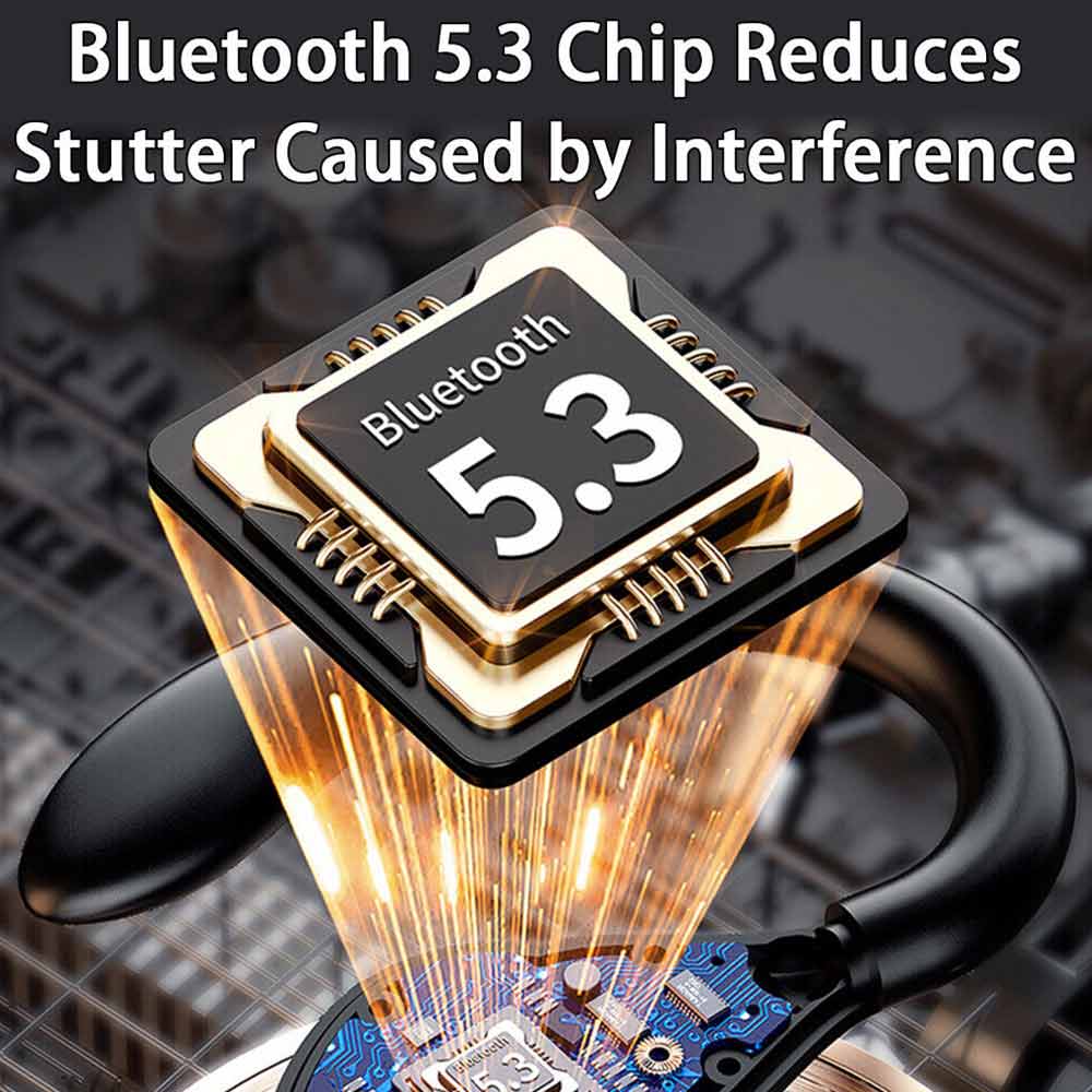 1.Powerful Bluetooth 5.3 chip: Adopted the newest Bluetooth V5.3 chip set and wireless technology, our earphone connect quickly and stably, which resists the interference of various electromagnetic waves during exercise, and makes running more comfortable.