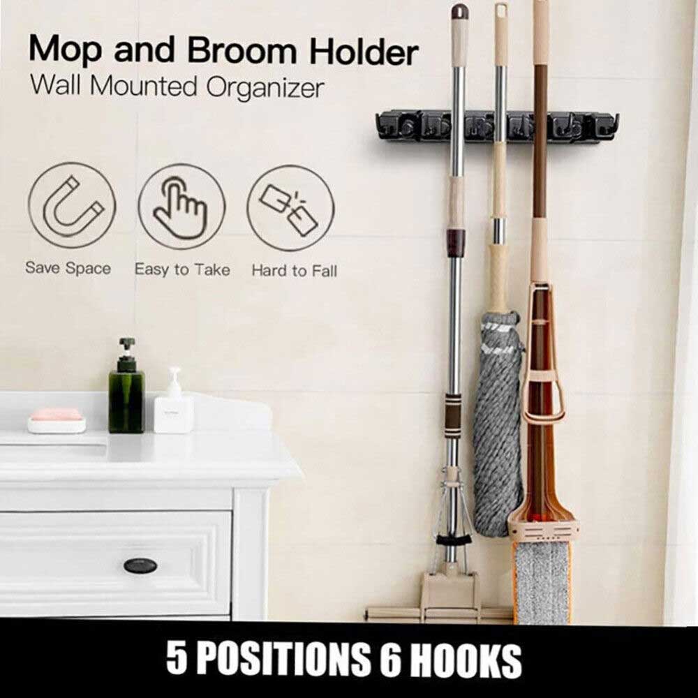 Broom Hanger Mop Holder Wall Mounted Brush Storage Rack Organizer Kitchen Tool