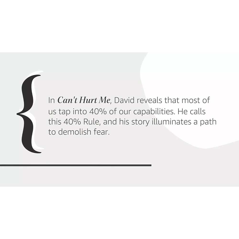 In Can't Hurt Me, he shares his astonishing life story and reveals that most of us tap into only 40% of our capabilities. Goggins calls this The 40% Rule, and his story illuminates a path that anyone can follow to push past pain, demolish fear, and reach their full potential.