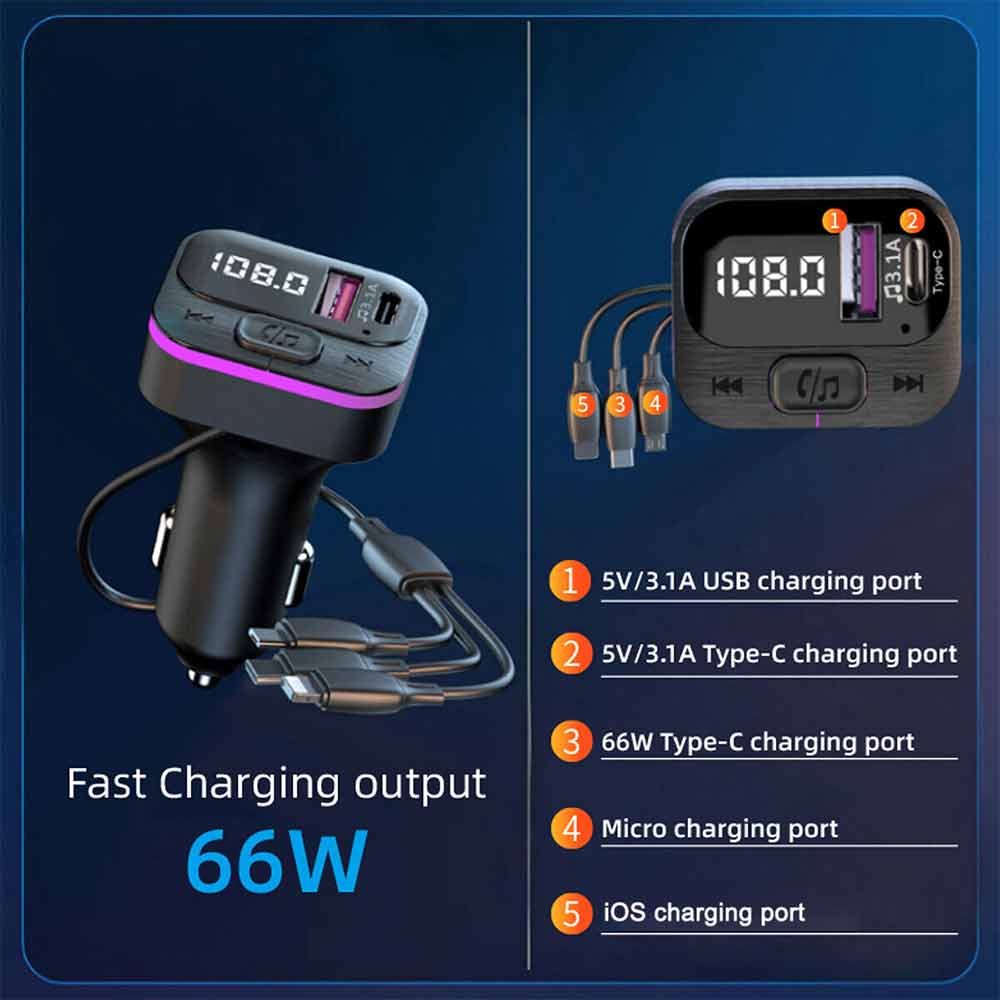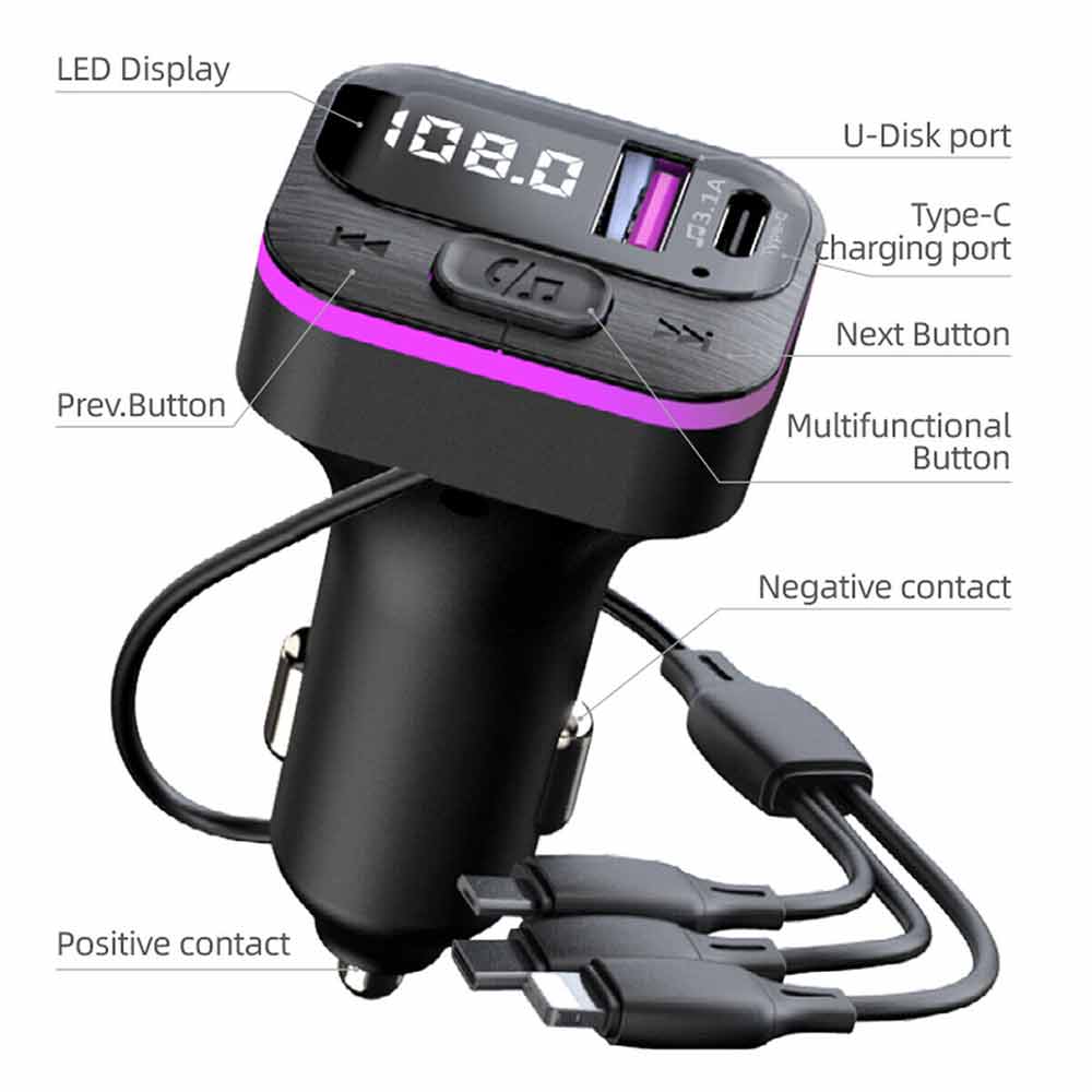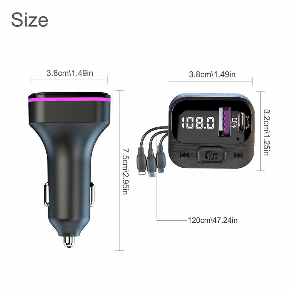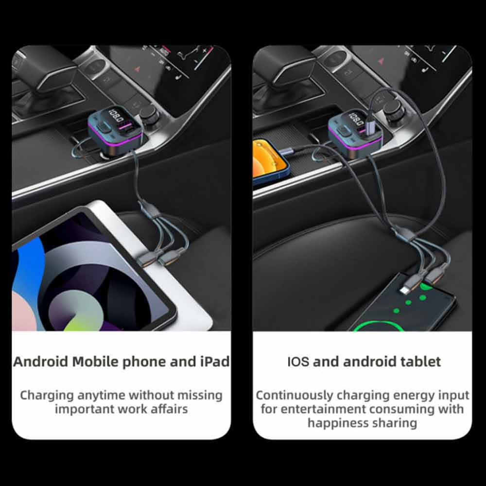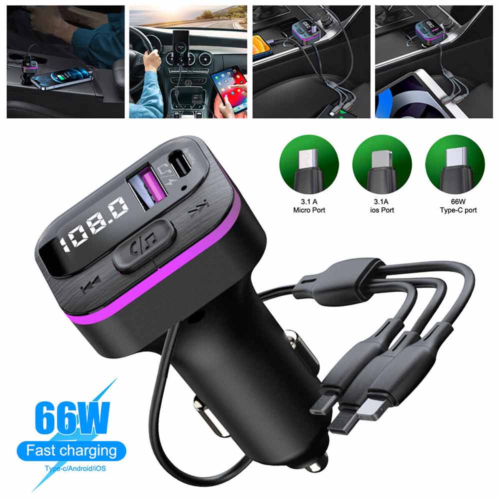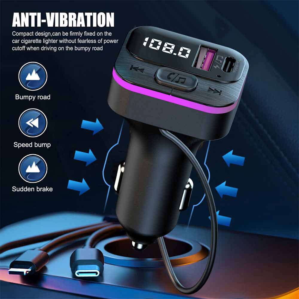 Car Bluetooth FM Radio Transmitter Adapter USB IOS Type C Fast Charger HandsFree