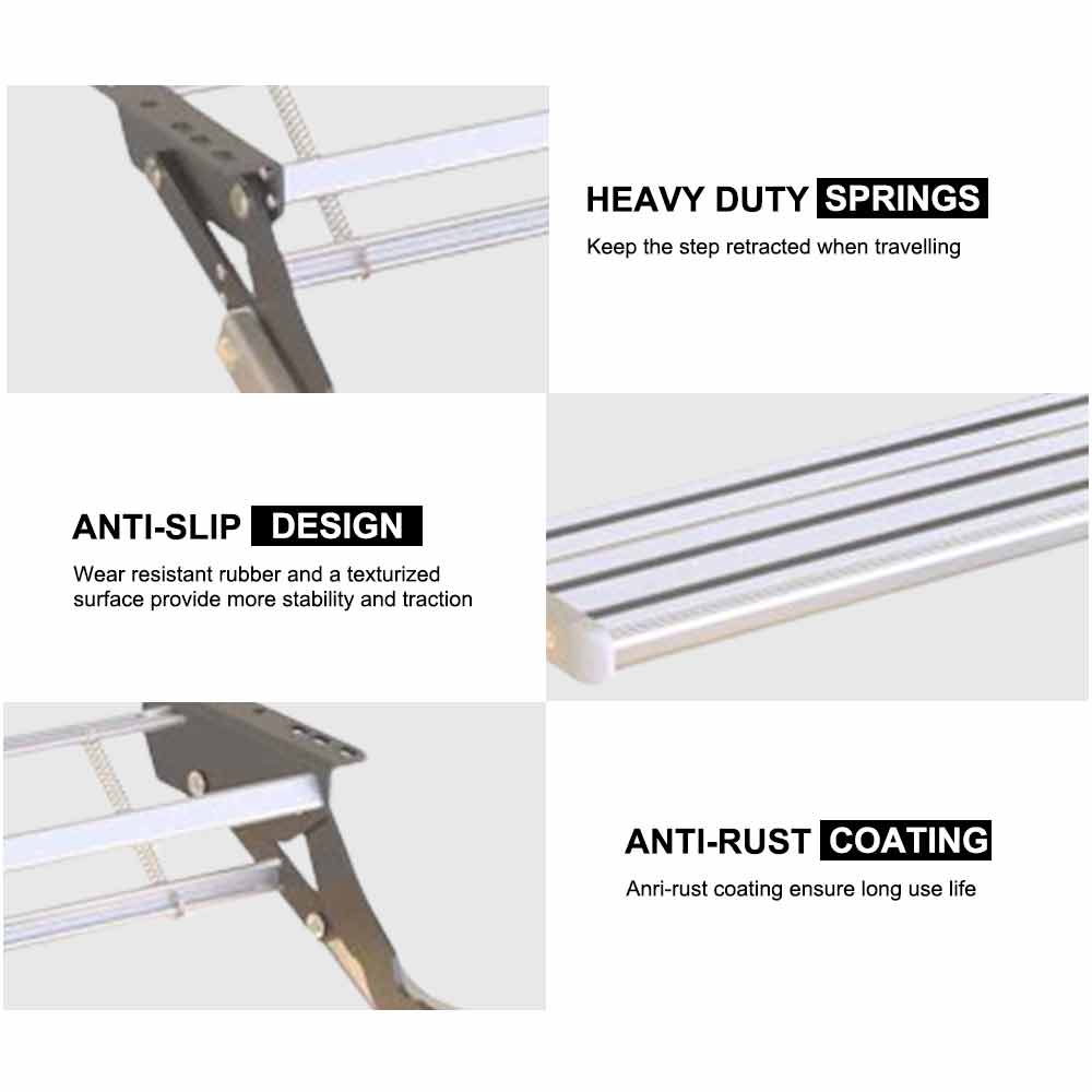 - Heavy duty springs keep the step retracted when travelling, even on rough outback roads
