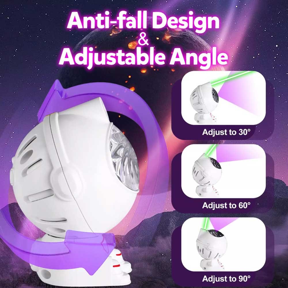 - Anti-fall Design & Adjustable Angle:Unlike other astronaut galaxy sensory light, we designed a slide on the head of the product. Allowing you to adjust the ANGLE without having to worry about it sliding off.With the REMOTE CONTROL, you can control it at any time without getting up.