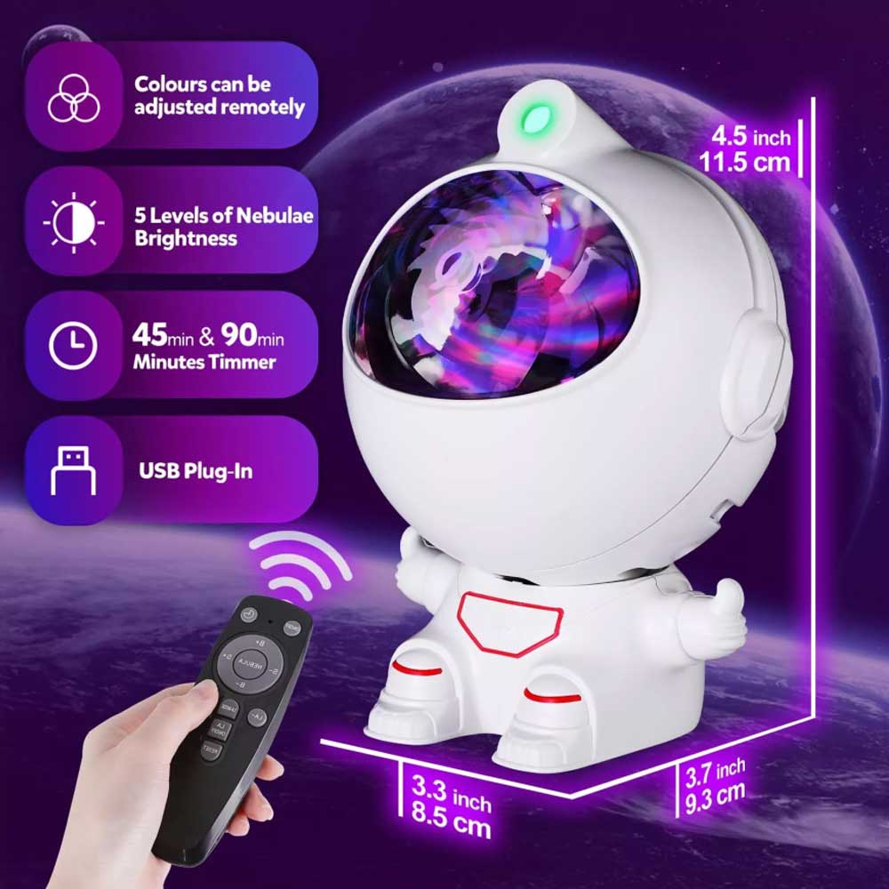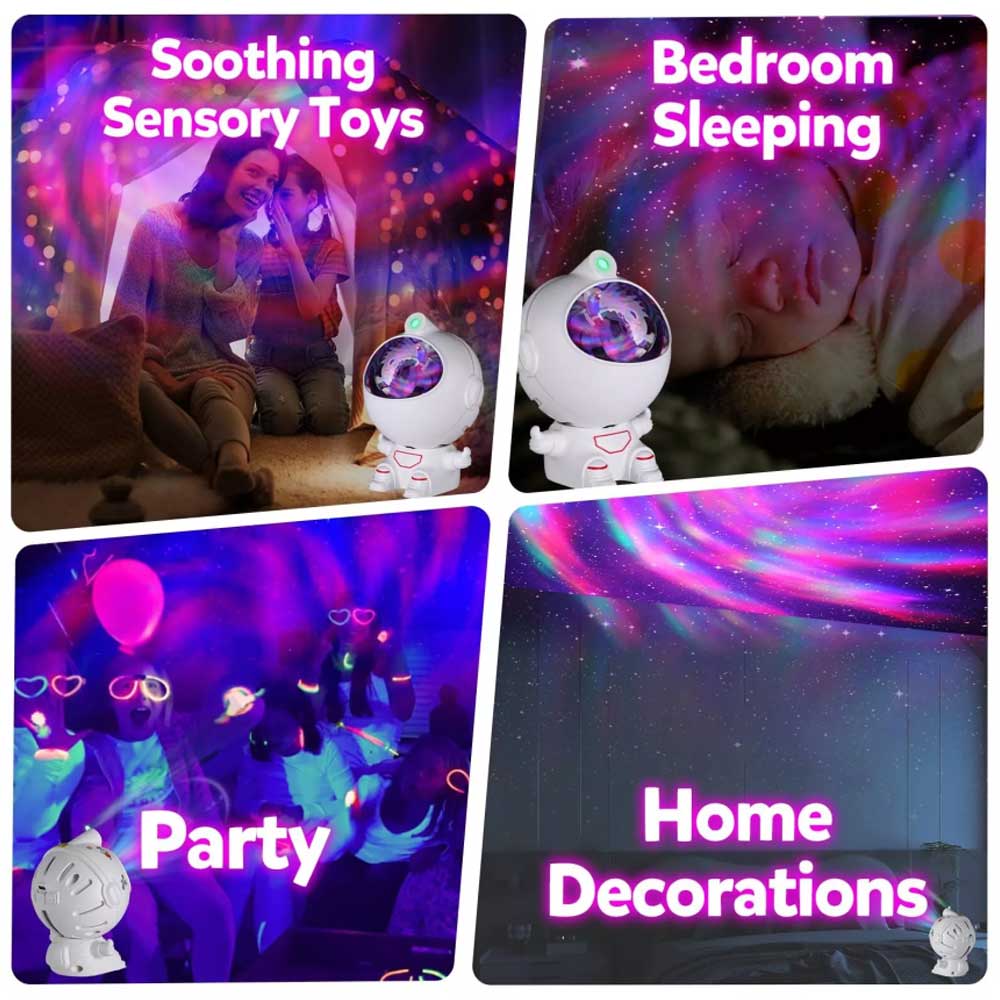 - Great Gift:Decorable spaceman shape, perfect for birthday, Christmas, Halloween, Thanksgiving gift giving. Especially suitable for space lovers and autism.【Please Note】Do not look directly at the illuminated part of the product after switching on.