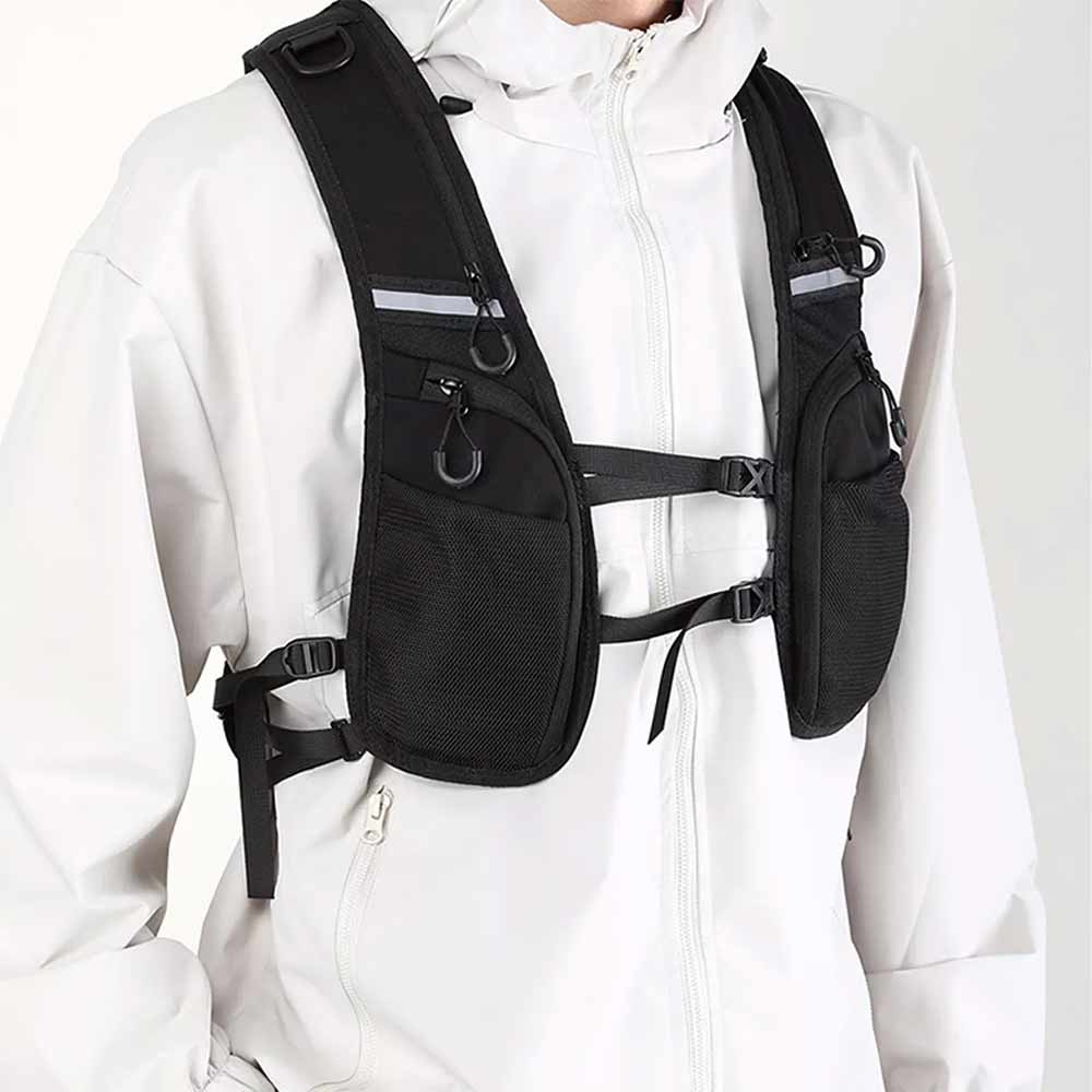 5. Fashionable and practical: This backpack vest adopts a fashionable and casual appearance design, combining beauty with functionality, making it a versatile accessory suitable for various occasions.