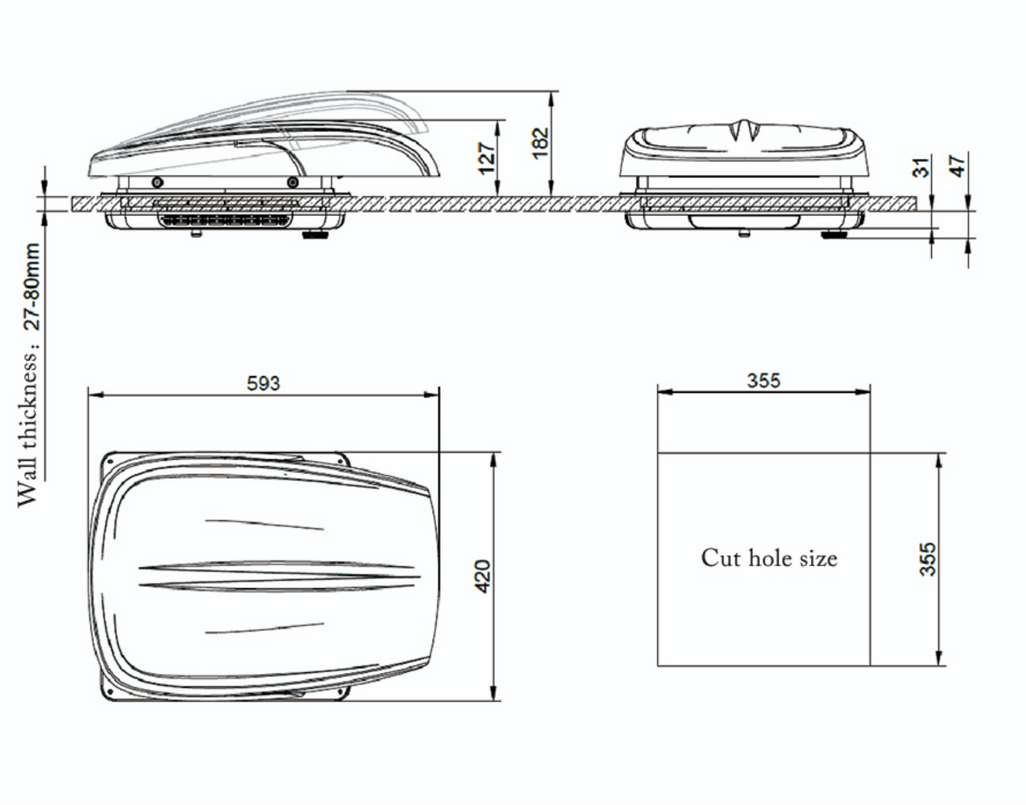 - Installs onto all standard 14” x 14” (355mm x 355mm) roof openings