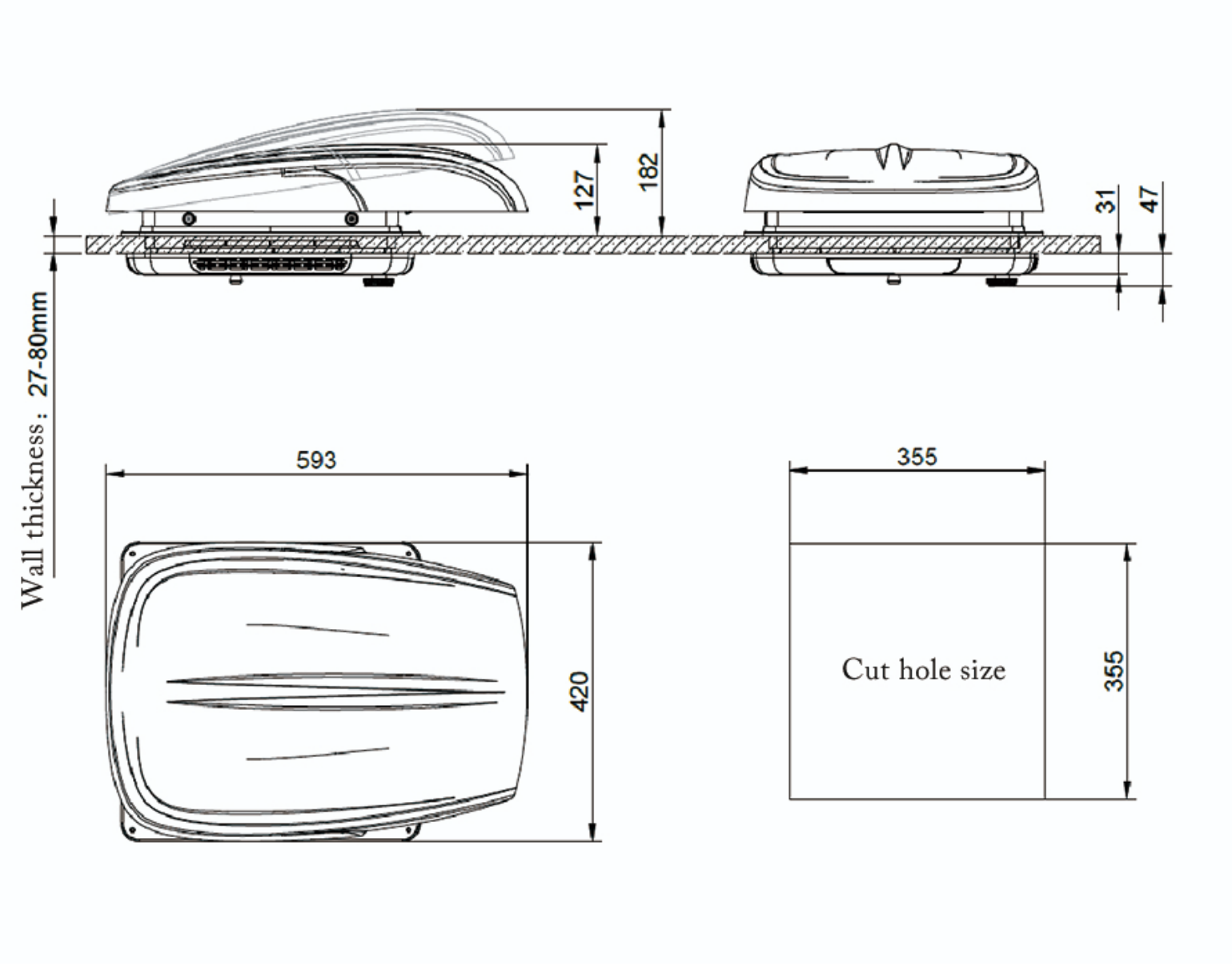 Roof Thickness: 27mm (min) – 80mm (max)
