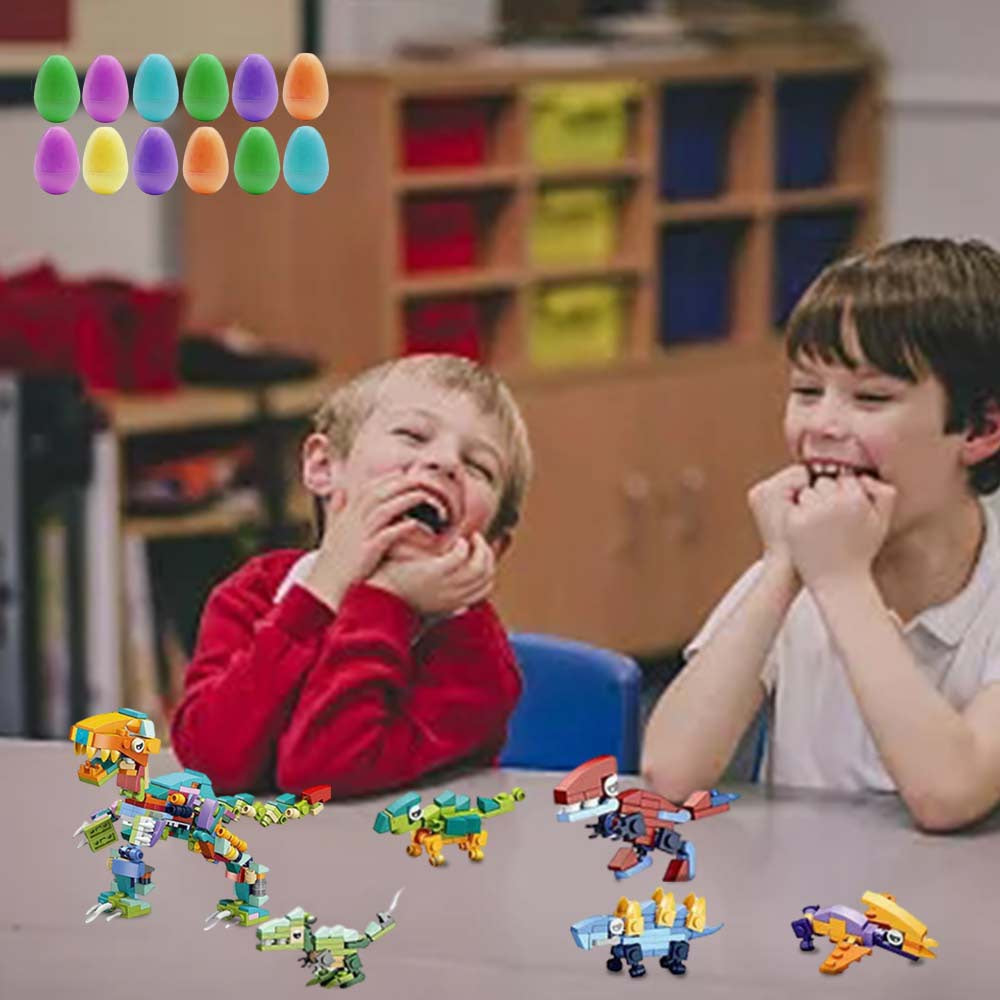 DINOSAUR BUILDING BLOCKS: Our Easter toys set includes 12 surprise eggs with dinosaur building blocks. The size of each egg is 6.4*5cm.