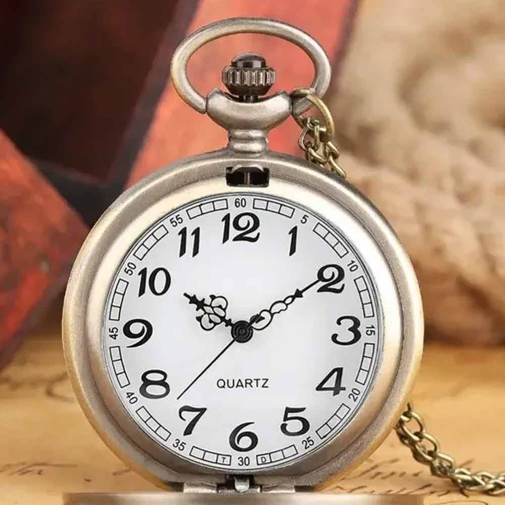 Vintage Quartz Bronze Pocket Watch with Chain.