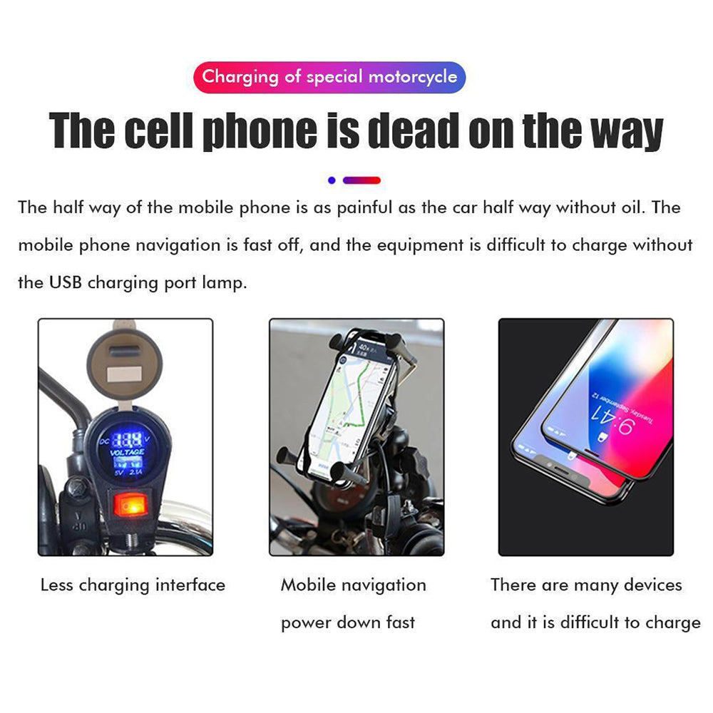 Dual USB Port Motorcycle Fast Charger Socket LED Voltmeter Display ON/OFF Switch