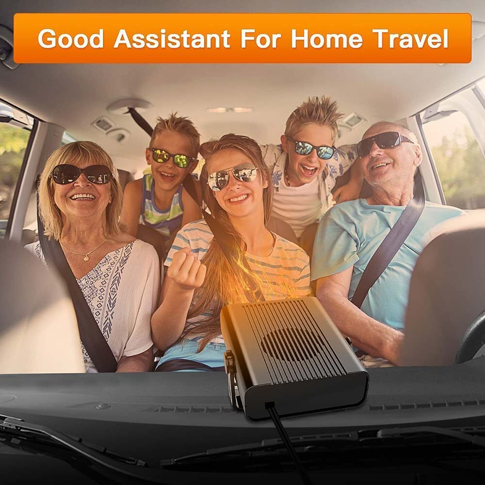 【Product Information】Size:14.5*10.5*8cm Fixing method: place it on a non-slip mat or attach it with double-sided adhesive tape (included). The portable car heater is made of ABS and heat-resistant plastic. High heat conversion rate, high temperature resistance, fast heating, strong and not easy to age. Very suitable for long distance travel or camping. 【Multifunctional Design】: This two-in-one car heater can be used as a heater or cooler for heating and cooling. It can quickly remove frost and fog on the windscreen of the vehicle. It can not only defrost car windows and windscreens, but also be used as a cooling fan in summer. 【High Power and Safety】Power: 150W, Working Voltage: 12V continuous current. Connect it to the car's 12V cigarette lighter socket, and then switch to a heater or fan The portable car heater can heat up quickly in one minute and dissipate heat efficiently. In cold weather you don't have to wait. It can heat up and move forward in all environments, gives you a clear view and makes you warmer and safer when driving. 【360 rotation design】: The 360 degree holder of the car heater can be freely adjusted to meet all heating directions. You can adjust the car heater to the desired angle. The ergonomic hand design sits comfortably in the hand and can also hold the warm air in the car for defrosting and defoging. 【Wide range of uses】: The car heater is suitable for all 12 V/150 W vehicles in the car. The car heater defroster can be used for defrosting, snow clearing, defogging and glass antifreeze. It is suitable for winter cars, camping, travelling and heating. For those with cars, this is the best gift for the cold winter.