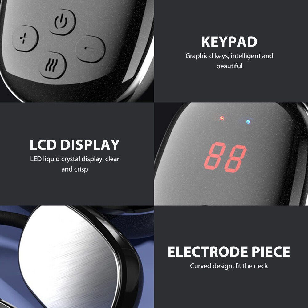 1. [Low-frequency EMS&TENS pulse technology]: This smart neck massager adopts dual electric pulse technology, deeply massages the muscles, relaxes the cervical spine, relieves neck fatigue, and effectively improves various neck problems such as shoulder and neck strain, pain, soreness, Stiffness and discomfort.