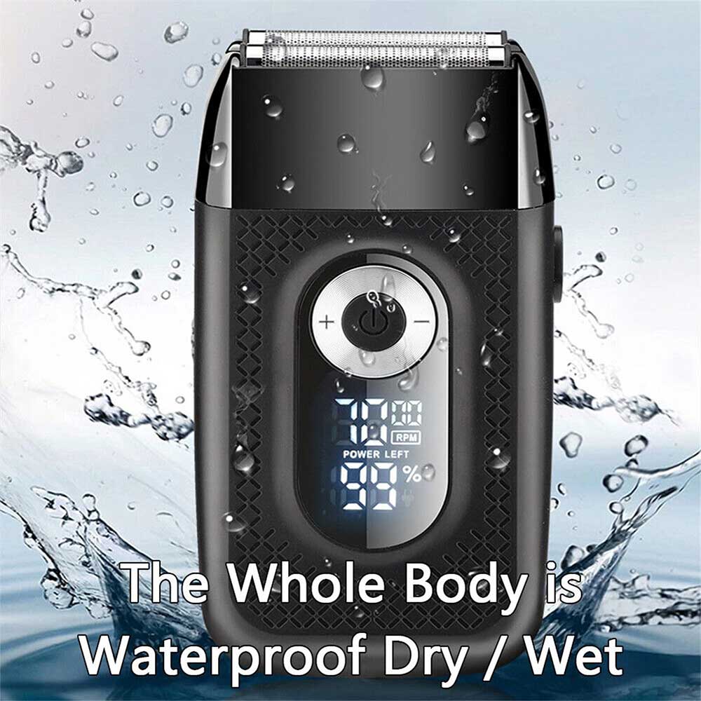 【3 ADJUSTABLE SPEED & Travel lock function 】: The speed of this mens electric shaver is supported to change among 6500RPM、7000RPM and 7500RPM,The LED digital display visually displays the speed and remaining power. You can control the speed of shaving, adjust it according to the thickness and length of your hair during the cutting.Travel lock (press and hold the POWER button for 3 seconds).