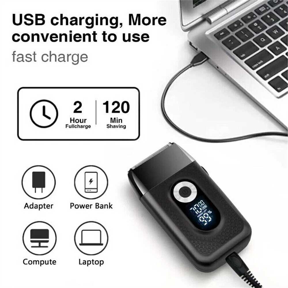 【USB charging and adapter charging】 - The bald shaver is designed for convenient charging. bald shaver supports charging USB charing such as power banks, computers, laptops, and USB outlet. For the adapter charging, To the best charging effect, please use a standard 5V1A adapter to charge the bald shaver. A fully charging after 2 hours could run for 120 mins.