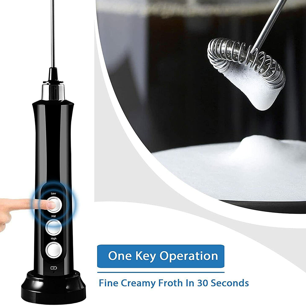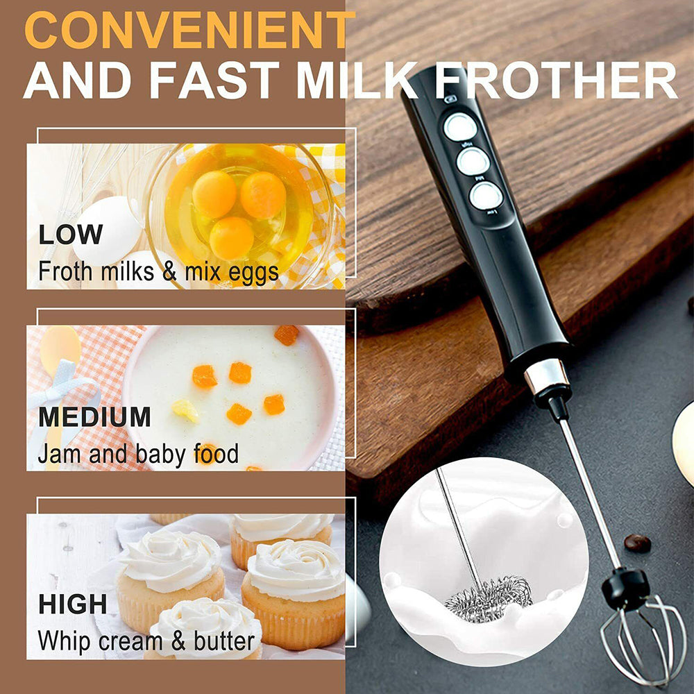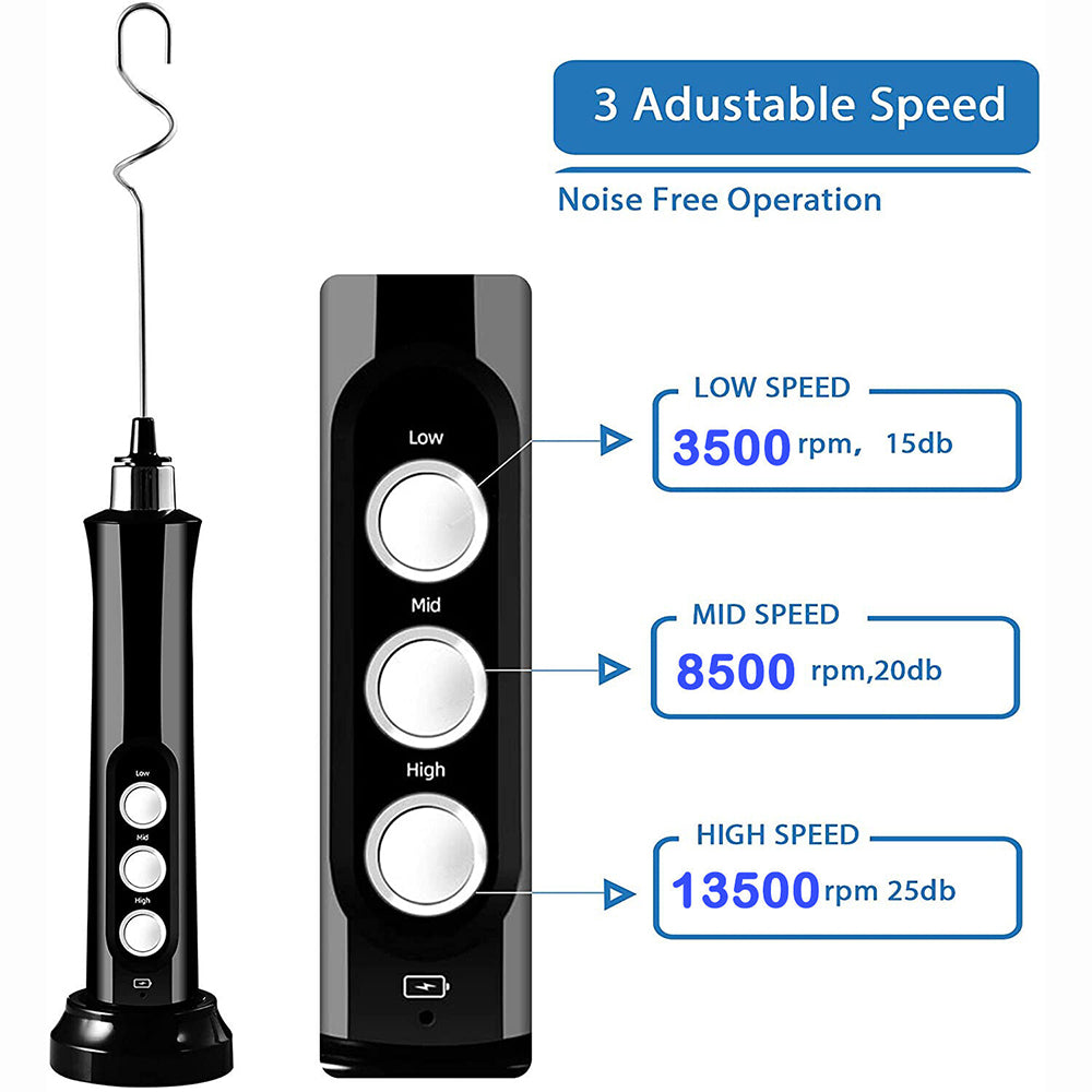 【 3 Whisking Speed】Our milk blender stick has 3 adjustable Whisking speed optional (low, medium, high) to get your desired amount of foam.TIPS:Since 3 adjustable speed has different vibration amplitude, kindly we recommend when using mini milk frother, please just pour one-third liquid into cup or bowl , to avoid that liquid is leak out.
