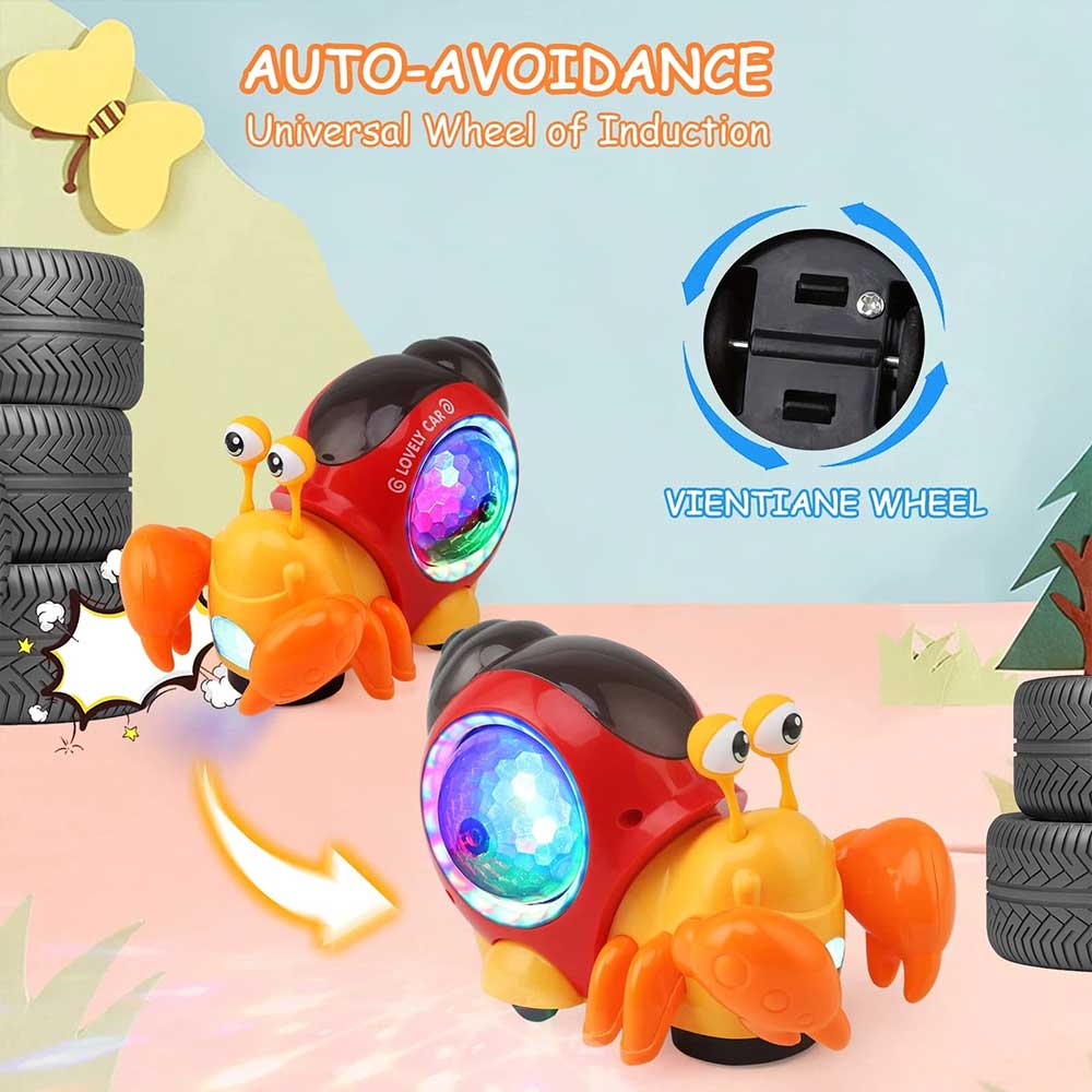 1. Electric Crab Toy: The Smart Crab detects what's in front of it using the built-in sensors and then automatically avoids obstacles. When you think you are going to catch the crab toy, it will actively avoid obstacles and move in the opposite direction. The cheerful music and flashing lights will attract kids' attention and make them have fun chasing.