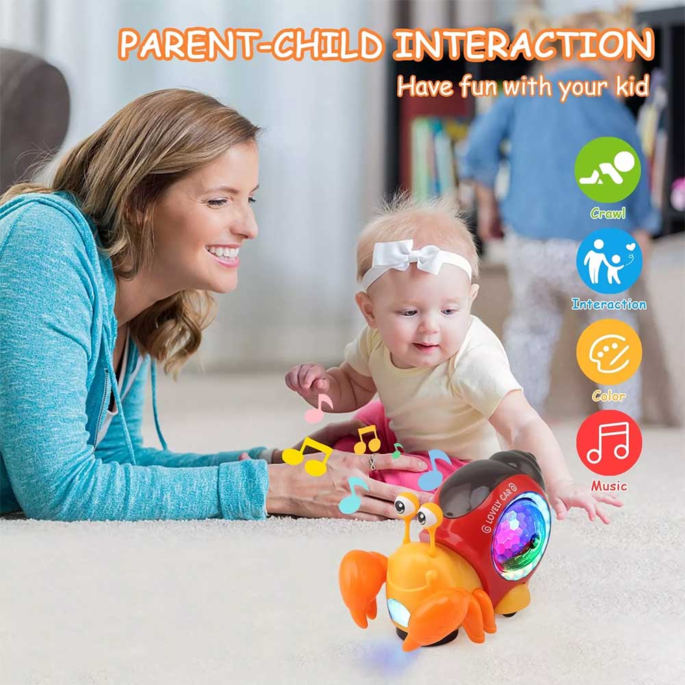Electric Music Crawling Crab Baby Toy LED Light Up Kids Toddler Interactive Toys