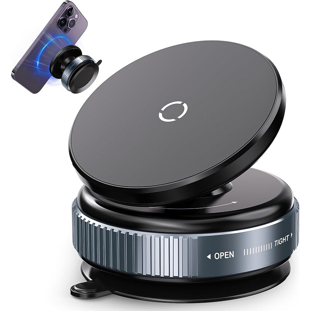 1. One-Touch Lock, Never Fall Off: The Vacuum Magnetic Suction Phone Mount features a reinforced strong suction base with vacuum suction technology. With just a twist, the magnetic car phone holder securely attaches to any smooth surface in seconds. Even on bumpy roads, the magnetic car mount stays firmly in place, ensuring stability throughout your drive.