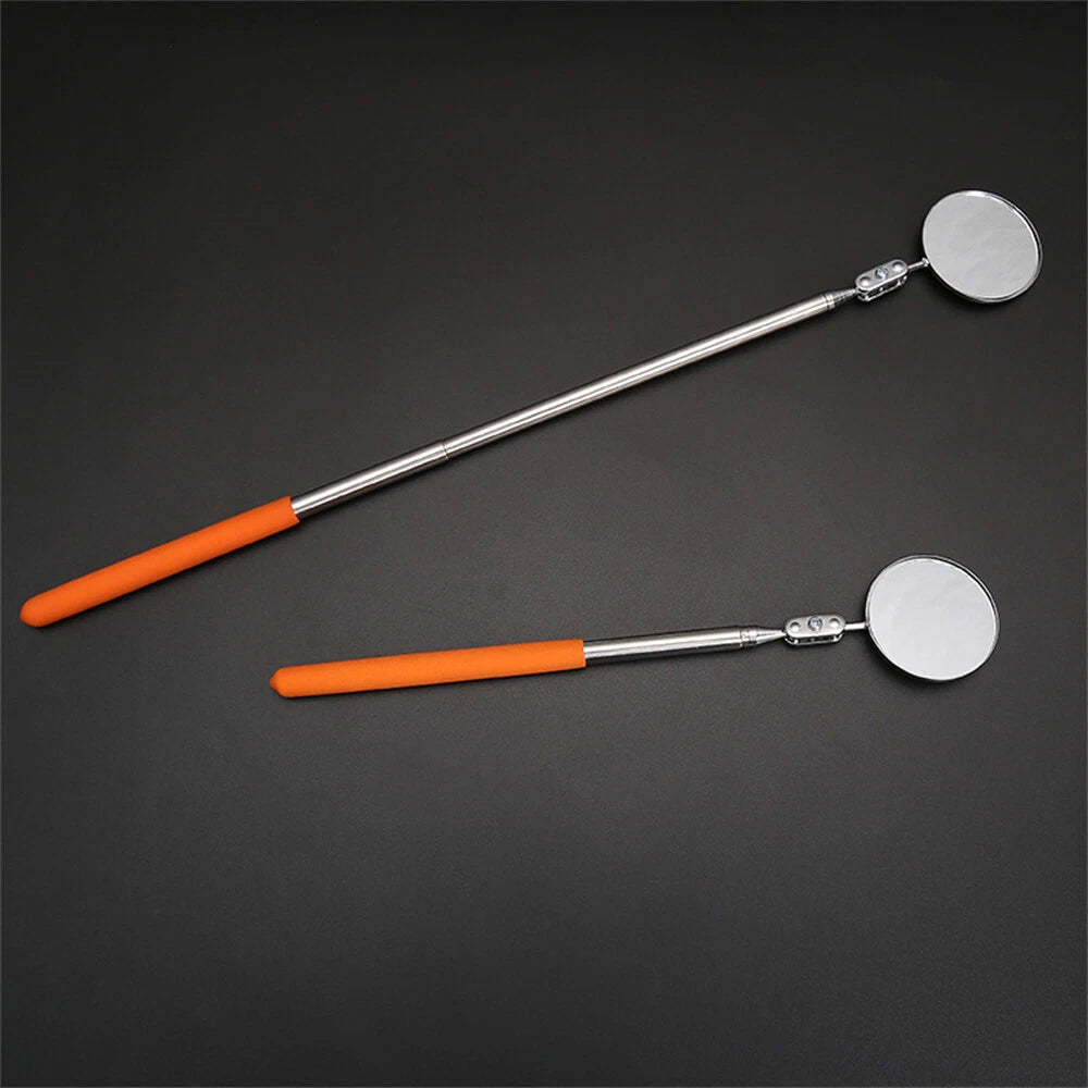 - Telescopic Inspection Mirror Extendable is ideal for those hard to see places, with its telescopic handle you can reach into any tight space with ease.