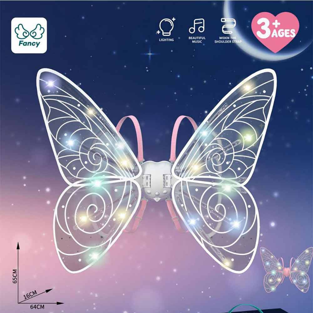 3. High Quality Material & Glittery Design: The designer uses the material of transparent artificial cicada wings, which is light in weight, not easy to age and fade, and has a magical gradient effect, Fairy Wings with musical and silent modes available.These fairy butterfly wings satisfy children's fairy tale dreams it.