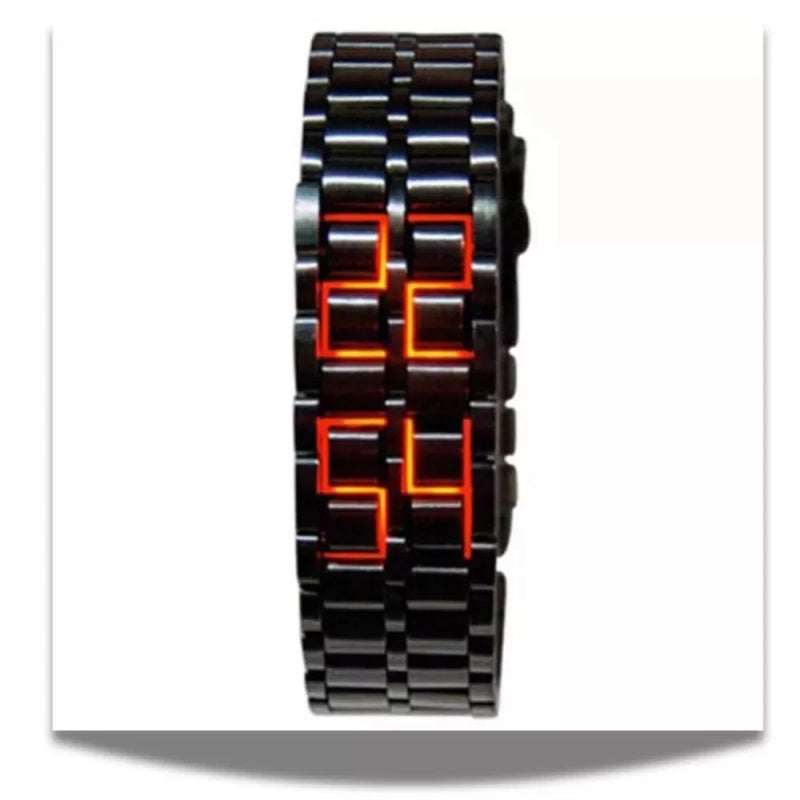 Fashion Mens Digital Lava Wrist Watch Men Black Full Metal Red LED Display
