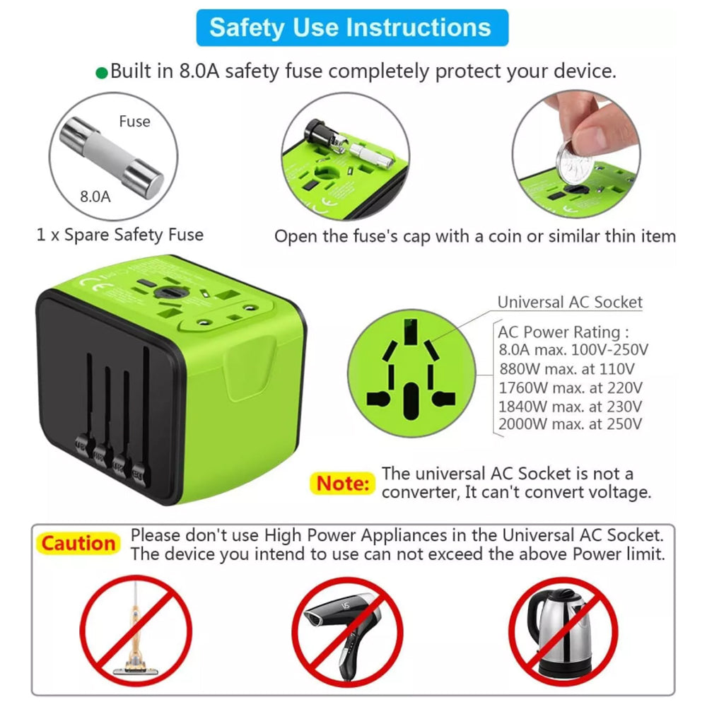 [Intelligent Shunting] Our travel adapter can automatically identify various devices. It can distribute current intelligently, and protect your devices.