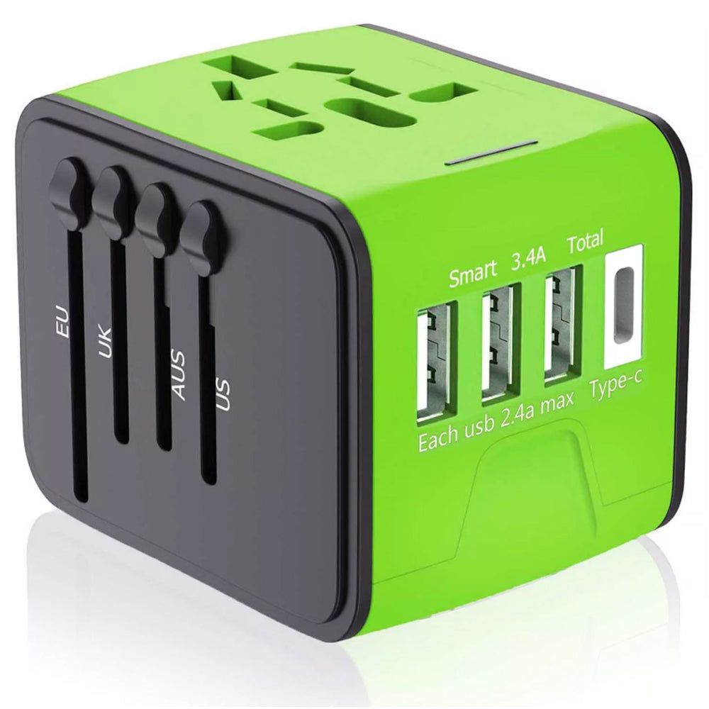 FAST 3.4A Universal Travel Adapter 3 USB &Type-C Outlet Converter Plug Power