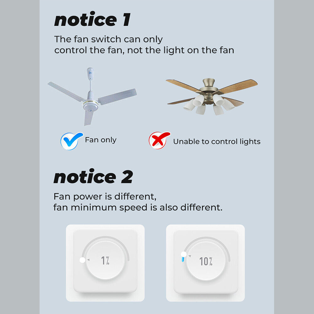 4. Touch switches and other mechanical switches can only operate on and off, and cannot support speed adjustment. You must first ensure that the switch is open before the on-off device can work