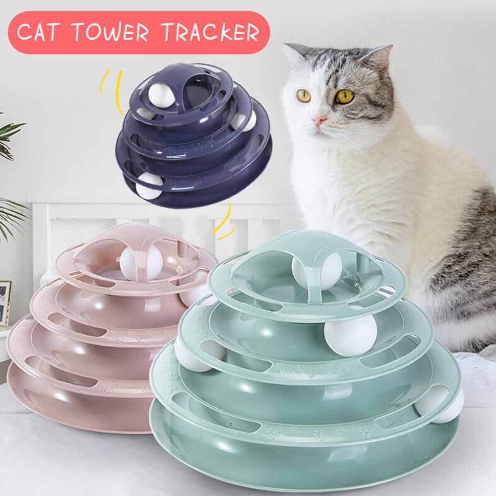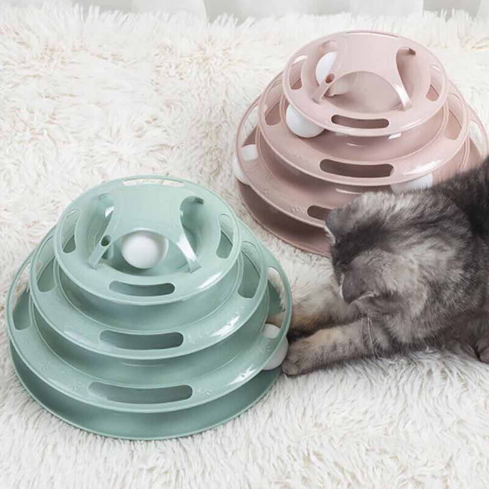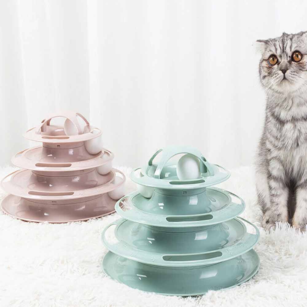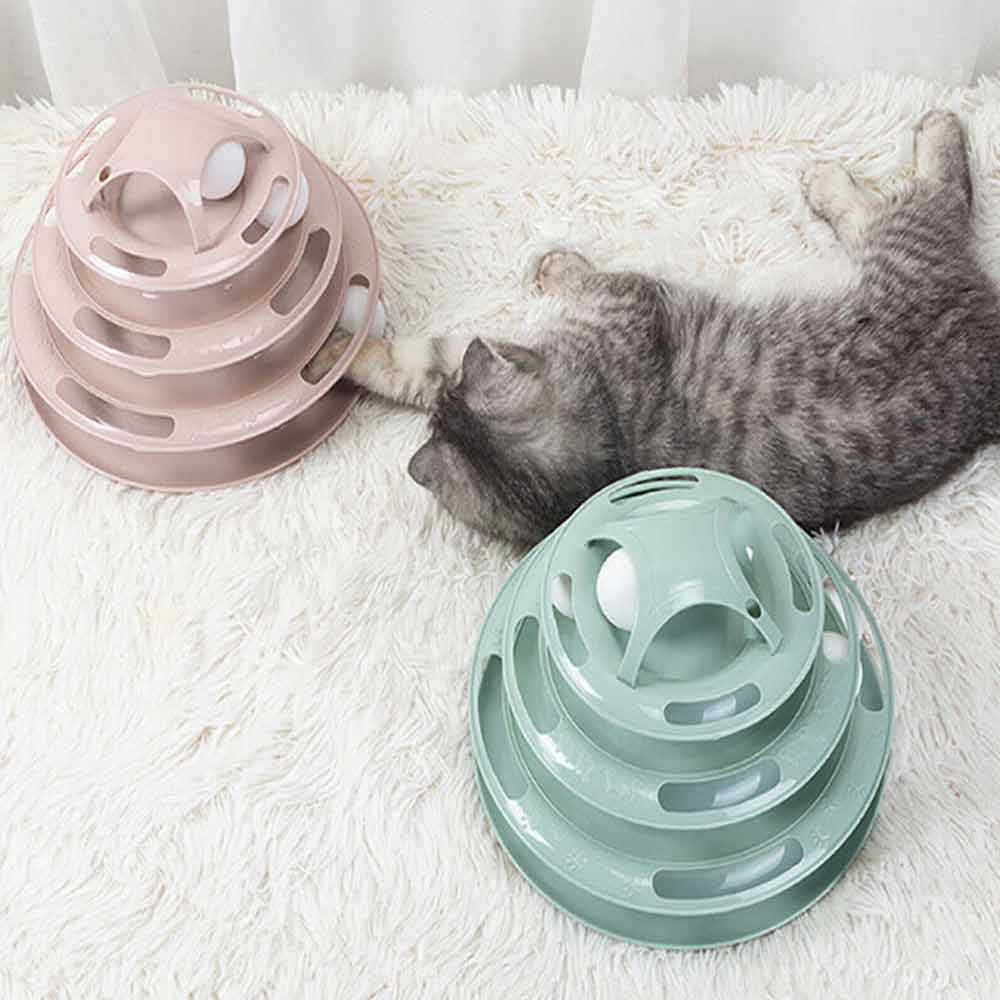 Funny Cat Toy Plastic Tower Interactive Track Ball Playing Game 3Levels Pet Toys