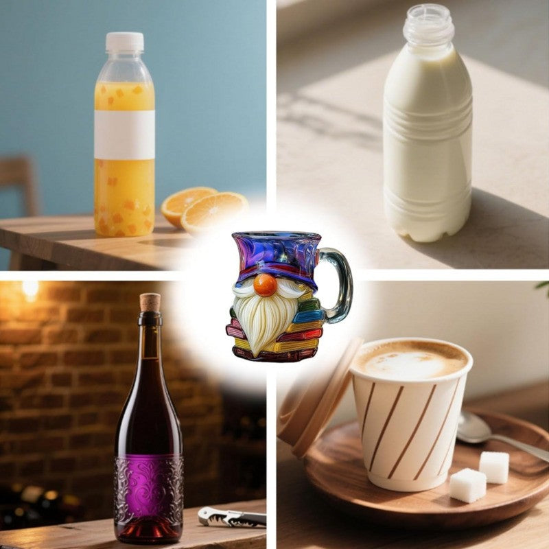 Glass 3D Painted Gnome Book Mug Stack Coffee Cup Novelty Room Home Decor