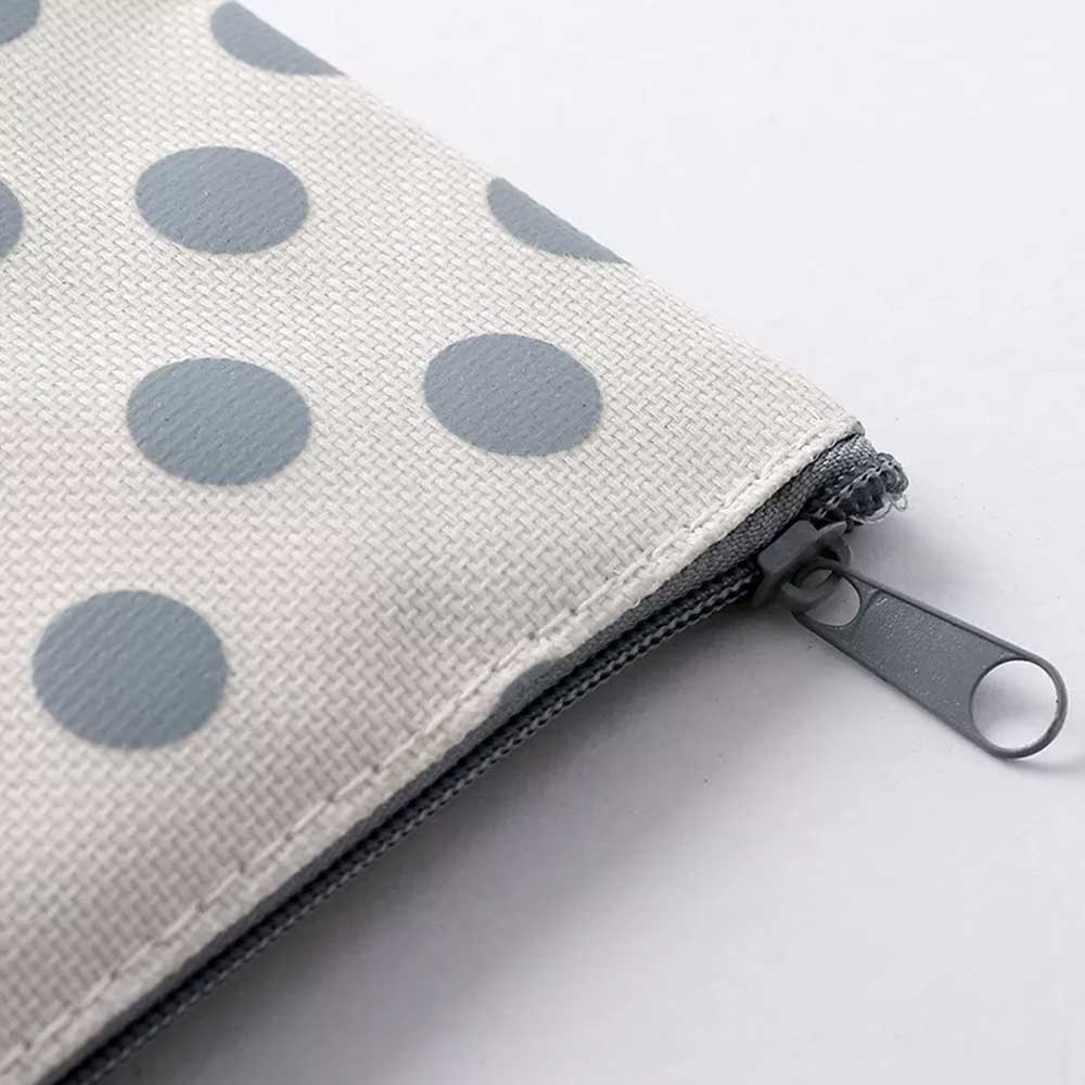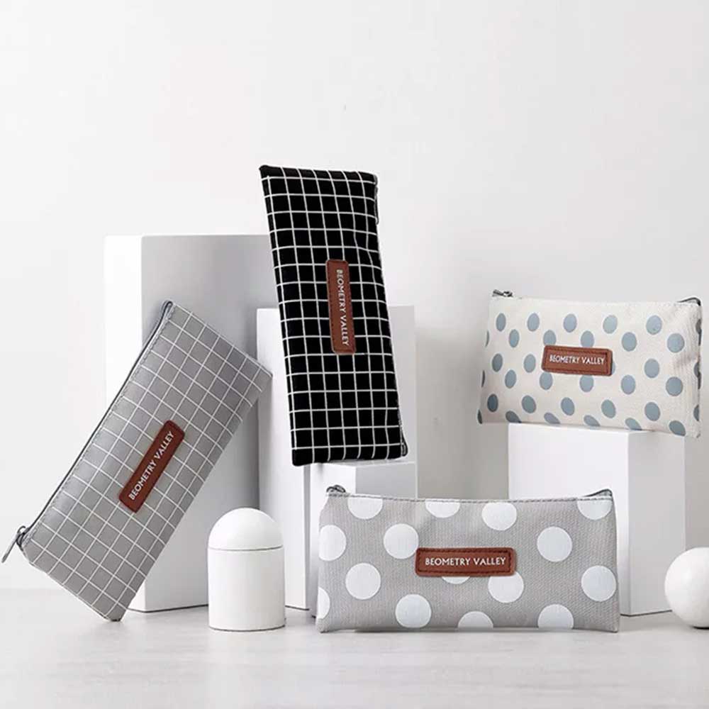 Grid Dots Canvas Pen Box Pencil Case Storage Bag Makeup Brush Pouch Stationery Gift