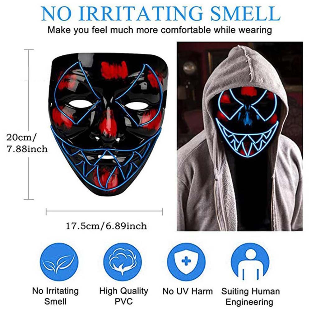 Halloween LED Purge Mask Glow in Dark Light up Costume Scary Rave Cosplay Mask