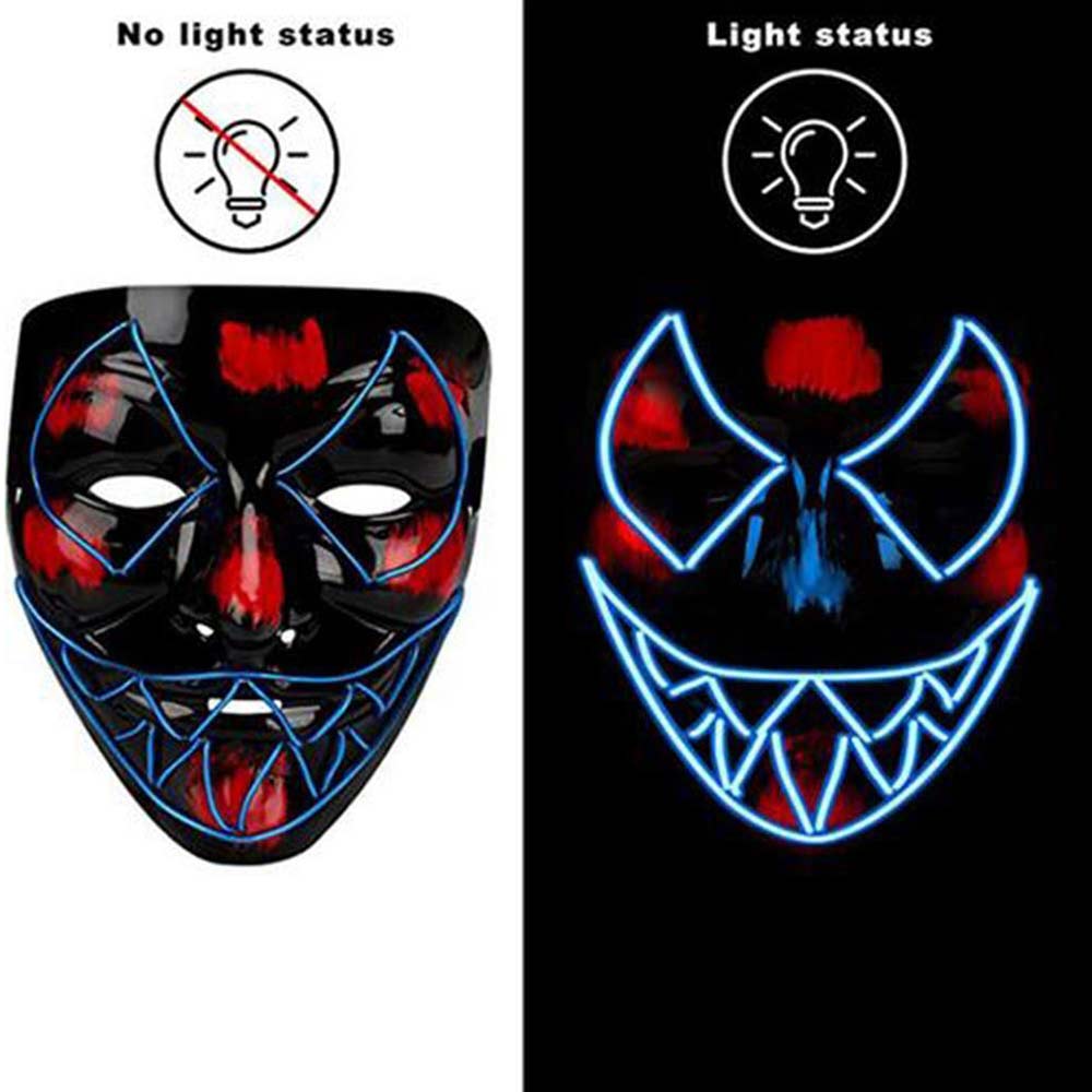 1. Halloween LED glowing scary mask: The mask is made of high-quality PVC and El cold light. The novel cold light will ensure that you stand out. No matter where you are. You will get the attention of others who are curious about your mask.