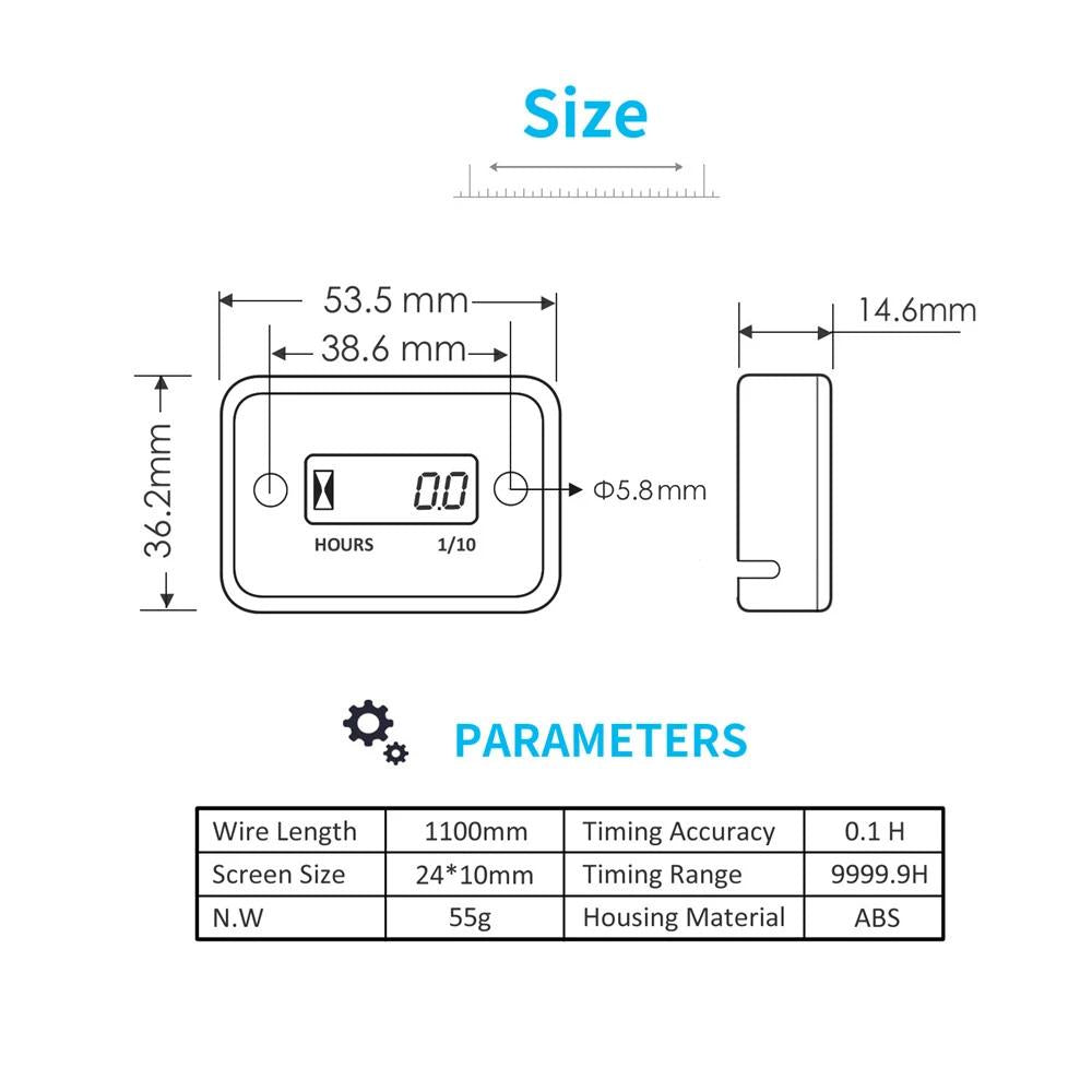 Inductive Waterproof Hour Meter Marine ATV Motorcycle Dirt Bike Sk Engine BLACK