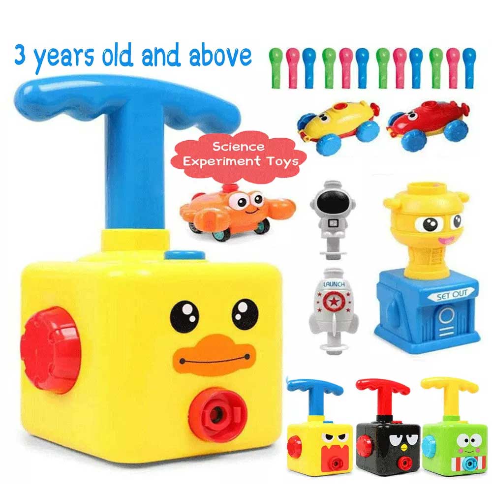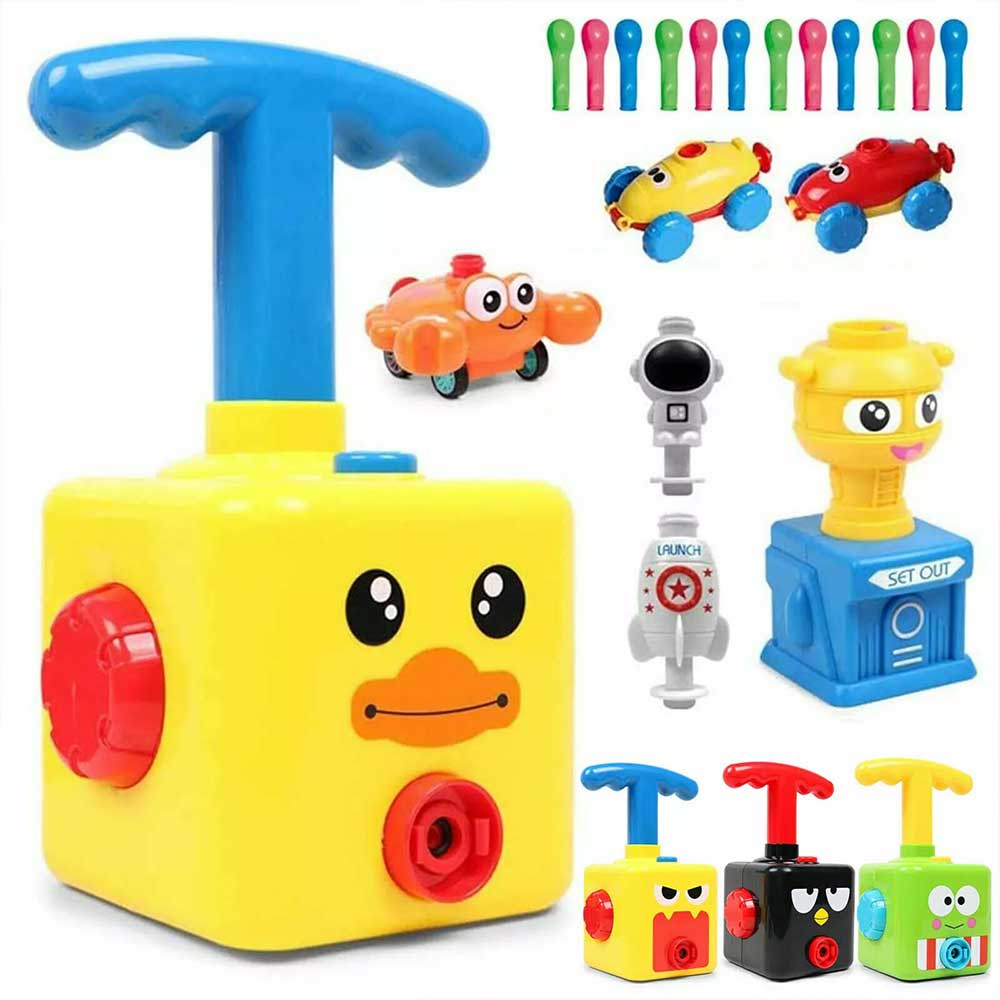 【Upgraded Set】: Balloon powered flying rocket toy included in the New set, the launcher will fly like a rocket! The product has a compact structure and is resistant to falling and abrasion. When children play this DIY toy, they would put a balloon on the car, connect a pump, press to inflate the balloon, press the GO button and let the car run etc. use the principle of aerodynamics to push the car toy forward, or drive the air nozzle to spin down from the sky, more game modes are waiting for you!