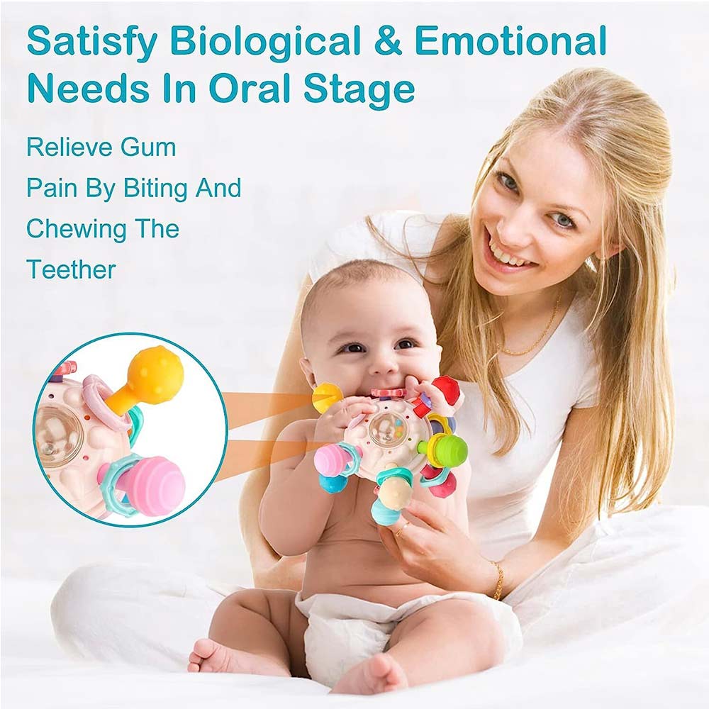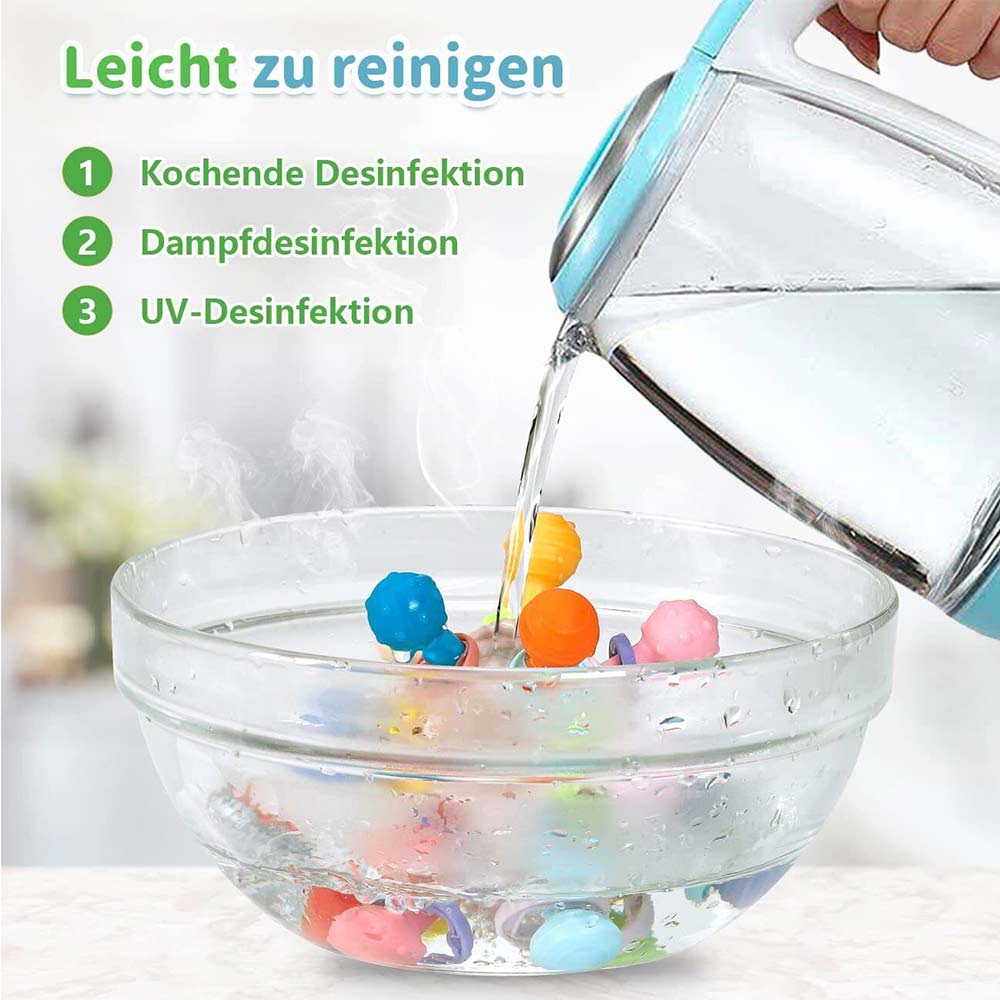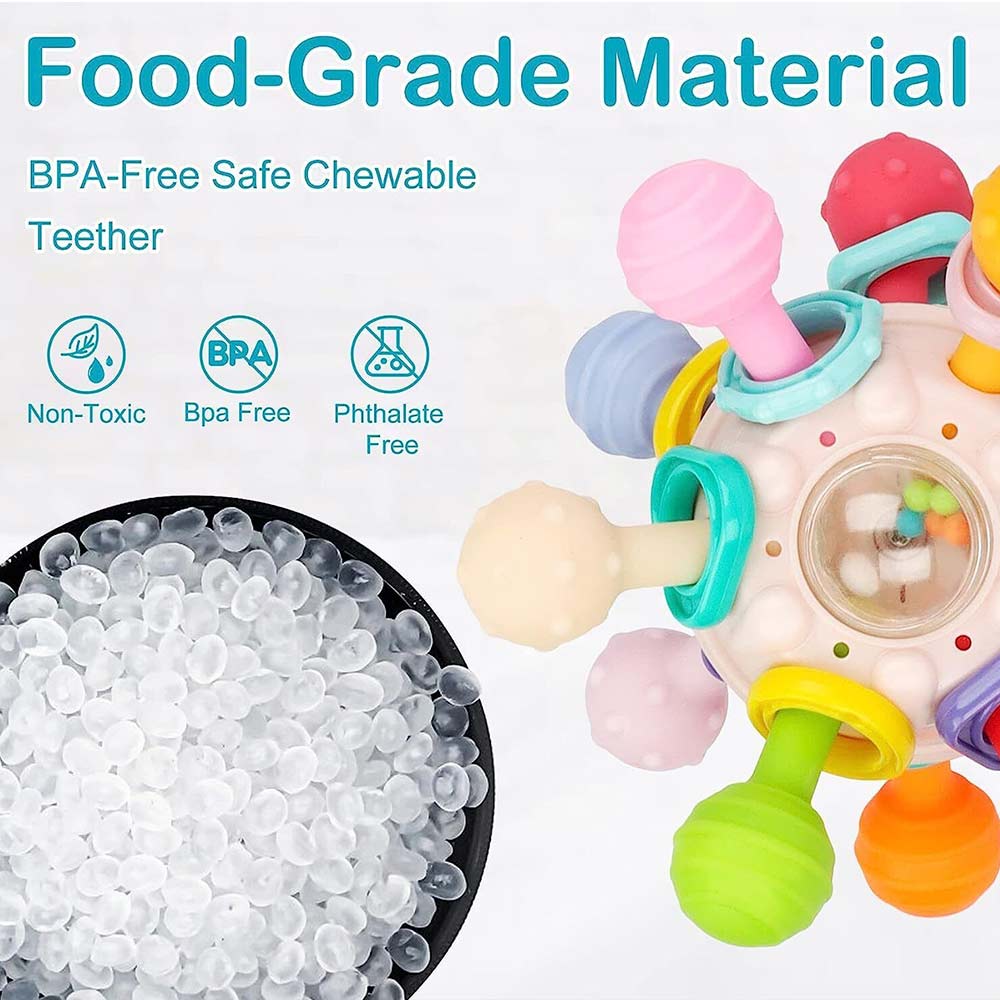 -Made of food grade silicone and ABS material, non-toxic, BPA free, safe for babies to touch, chew and gnaw at will.