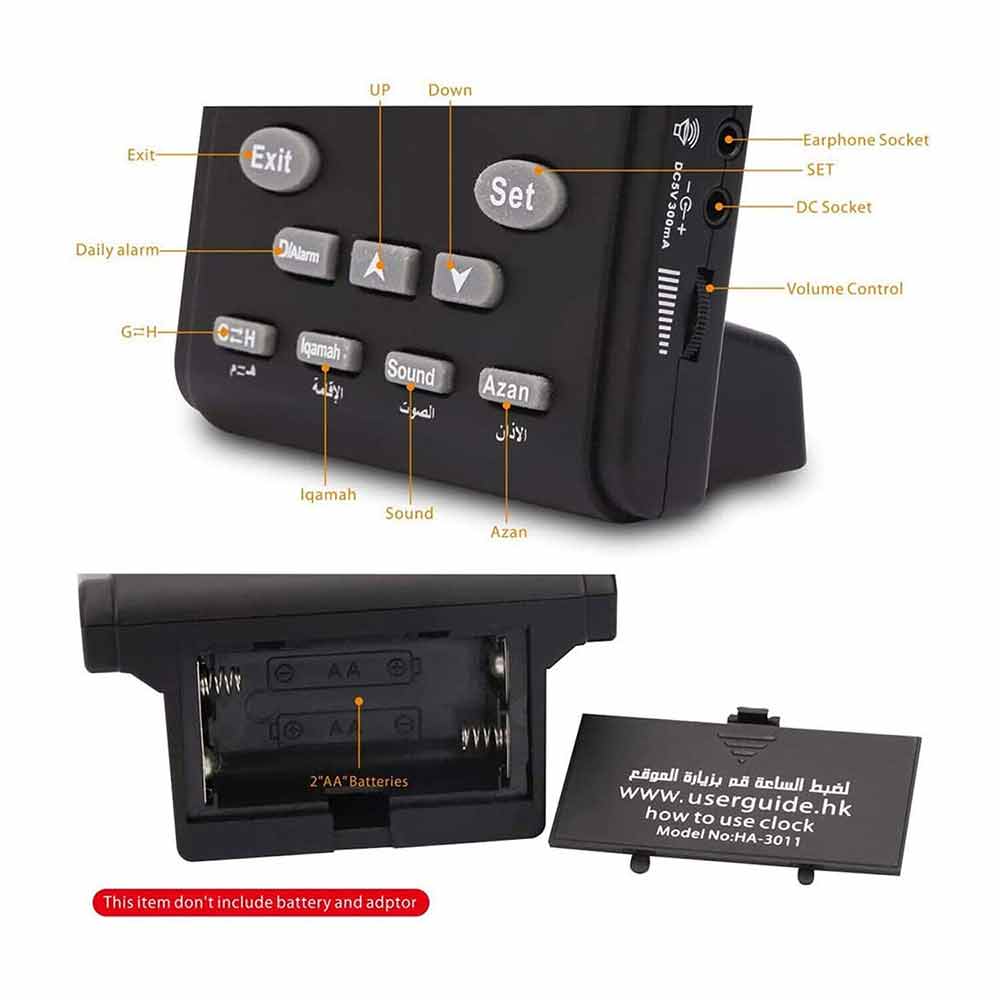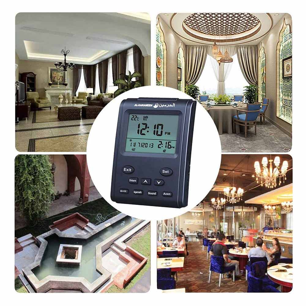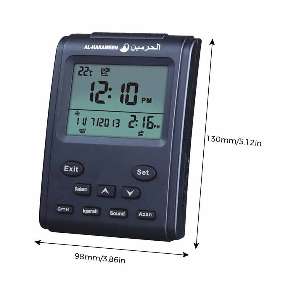 Complete azan for all prayers: Characterized AL-HARAMEEN O'clock with A high quality Azan sound for all prayers with azan volume control fitted in all clock models.