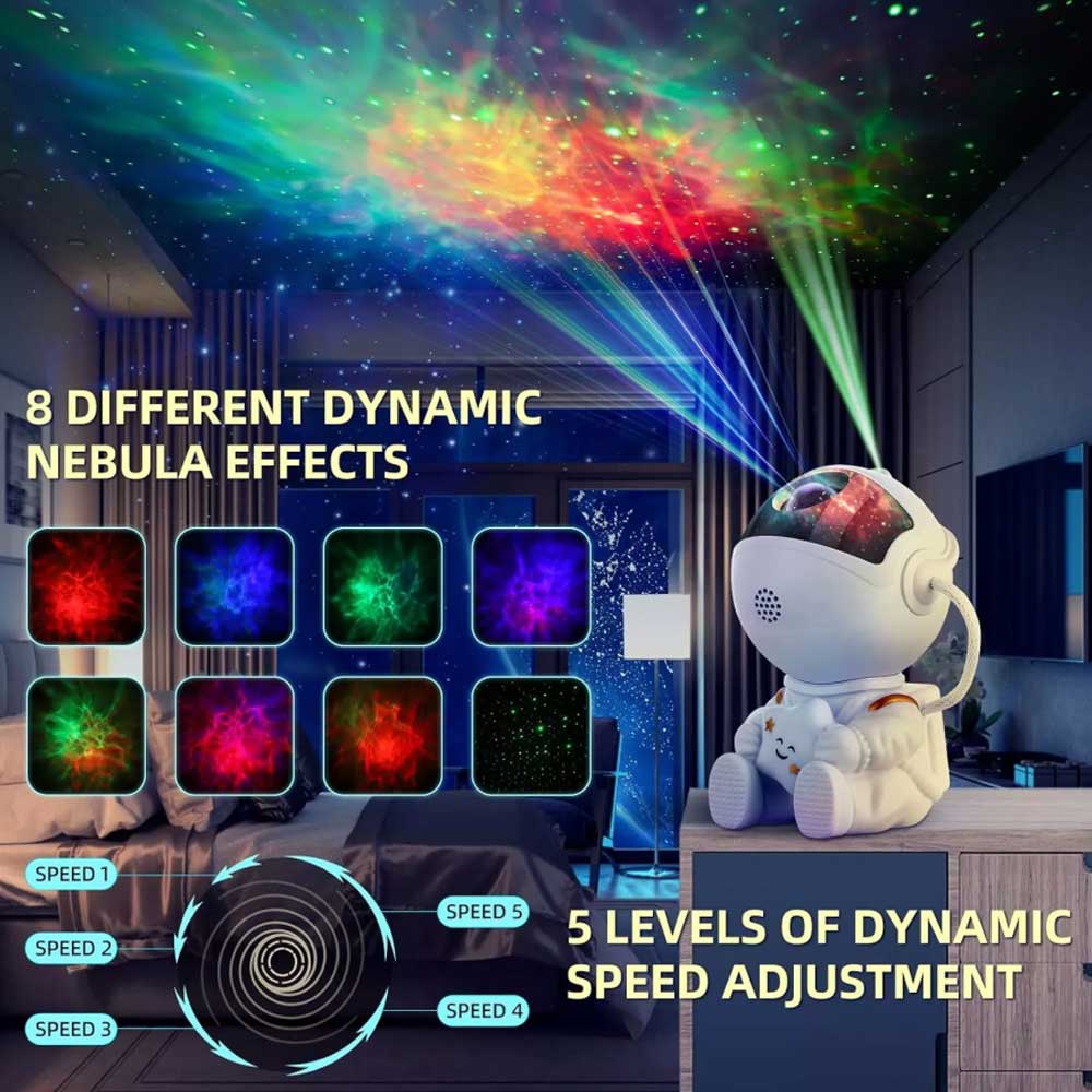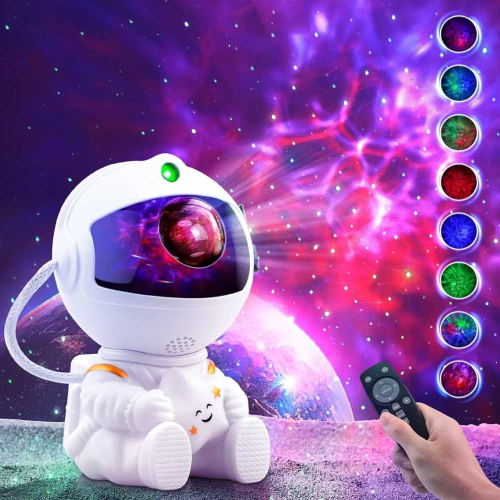 Astronaut Galaxy Projector--This Astronaut Star Projector light features 8 coloured star effects with twinkling colourful stars. The high-definition galactic light will fill walls and ceilings with stars and nebulae, creating an immersive experience as if you were in the Milky Way. This unique astronaut design can be used as astronaut decorations to decorate your room with an astronaut theme.