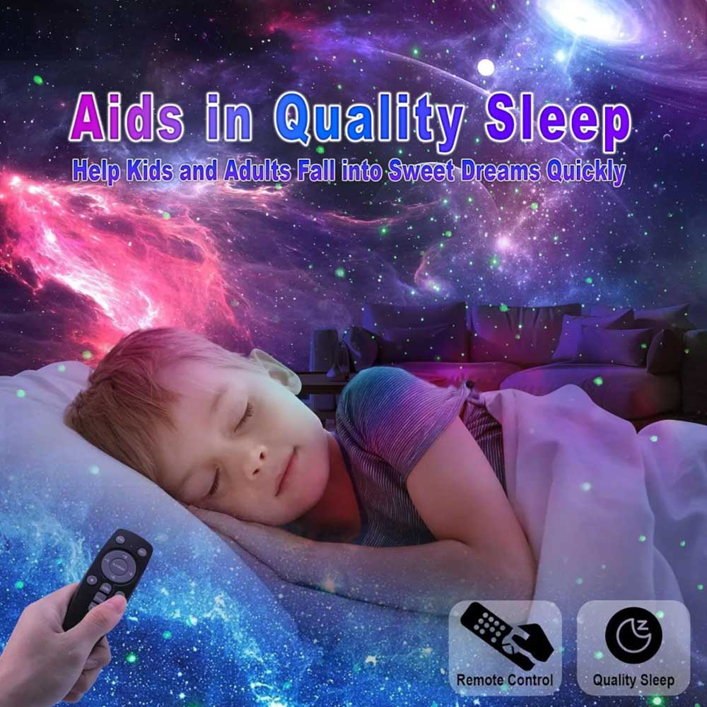A great gift for children and adults---Star projector Night Lights are perfect for giving to friends and family. It can also stimulate children's curiosity, imagination, and creativity. Create a beautiful night for the children, or spend a relaxing and comfortable night with your lover, reducing the stress and fatigue of the day. It is an ideal holiday gift for your lover, children, family and friends.