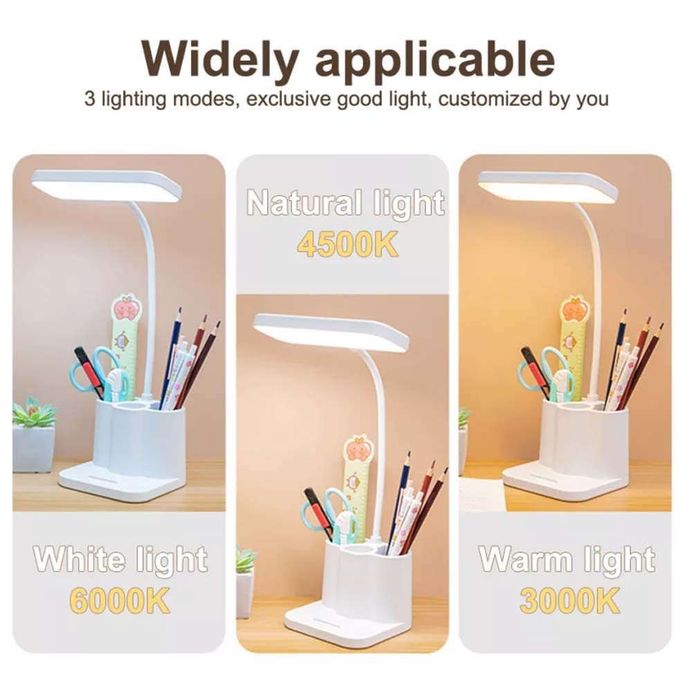 ADJUSTABLE AND PORTABLE: 90° adjustable desk lamp arm and 180° foldable desk lamp head make this compact desk lamp easy to fold and even fit in your backpack.